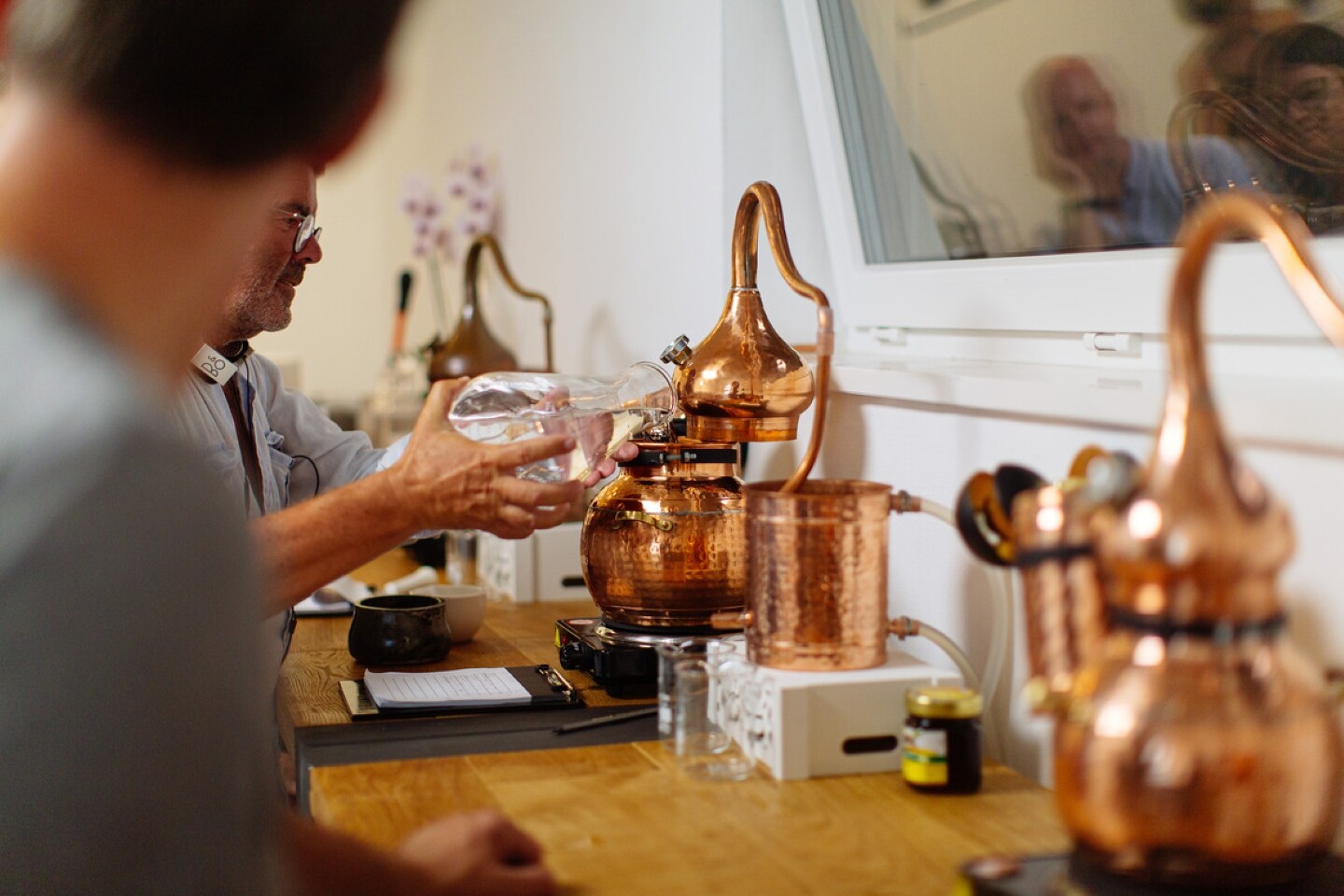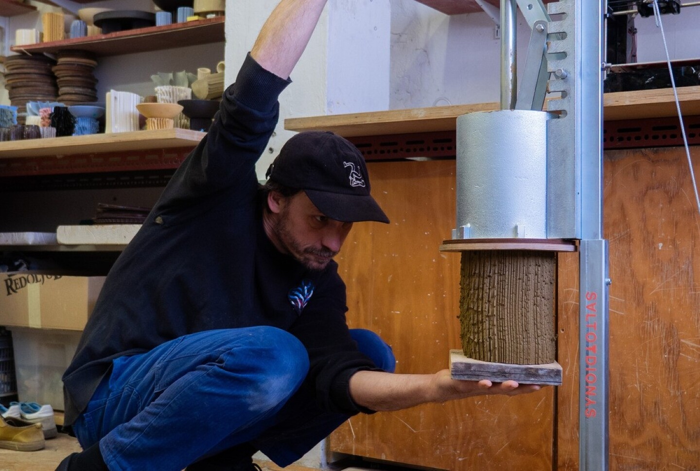 The Slovenian space brings together eleven independent practitioners whose enduring practices have demonstrated both their resilience and their necessity by creating their own communities over the years. From Gaja will join forces with Gin Brin to present the process of foraging and distilling gin from local botanicals; Gobnjak will demonstrate home mushroom cultivation and tincture-making; Toasted Furniture and Salto Dionys will demonstrate live pressing of recycled plastic and clay extrusion techniques, while Pjorkkala will use their 3D-printed Dodola clay filter to purify water for hand washing in the central “bar”. Nika Ravnik will engage visitors in her process of creating zero-waste fashion from geometric textile pieces, while Prostorož will redefine the terrace of Villa Bagatti Valsecchi as a new public gathering space. Hiša Mandrova will offer an open learning environment focused on manual woodworking, and Anselma will involve visitors in the making of upcycled textile garments, inviting them to participate in a spatial installation—a button-sorting station. The soundscape of the MATERIAL BAR will be provided by Miha Šajina (Shekuza), who will use home-made analogue synthesizers to invite visitors into an interactive quadraphonic sound experience.