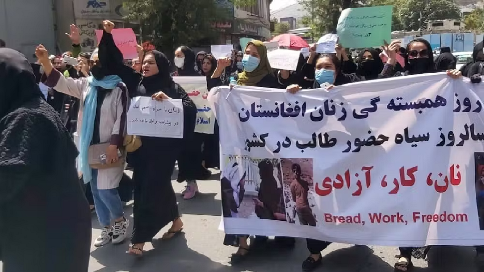 International Women’s Day protests in Tehran, March 1979. The banner reads: “Women’s liberation is not Eastern or Western, but international.” Photo: Richard Tomkins, Associated Press.