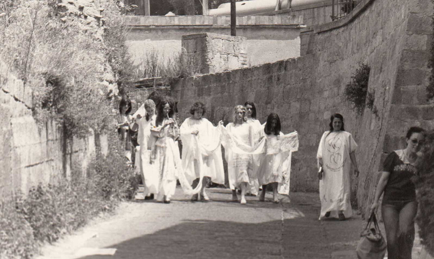 In 1969, the same year as Pasolini’s Medea, Lina Mangiacapre returned to Naples after she had participated in the large 1968 student movements in the north of Italy. She had graduated with a degree in philosophy but since the revolts had devoted herself to painting under the pseudonym Màlina. Back in her hometown, energized surely by the magnitude of student and worker uprisings that would inaugurate a decade of country-wide insurgency, she cofounded the feminist collective Le Nemesiache (named for the goddess Nemesis), which had a clear goal: they “intended to bring myth back into the world.”