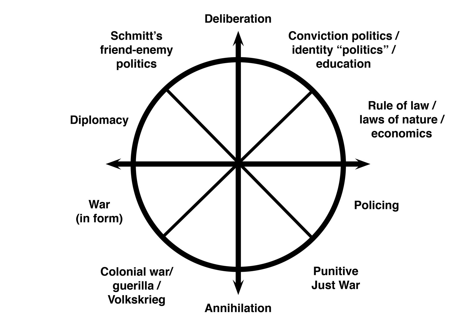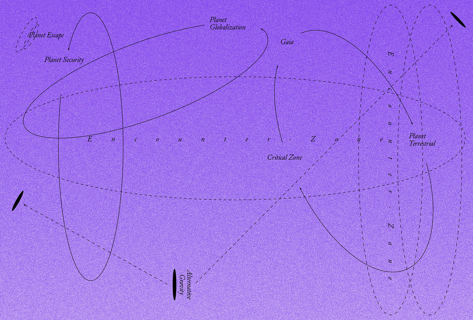 The singular image of the blue marble is now divided into different worlds which form a constellation that has nothing to do with celestial harmony. We are caught within it, where for each decision we must make, the gravitational attractions of the different configurations of earth make one’s head rotate as if on a merry-go-round. The model for describing this condition is not just some new form of dialectic (implying only two poles), but rather a configuration with a multiplicity of polarities.