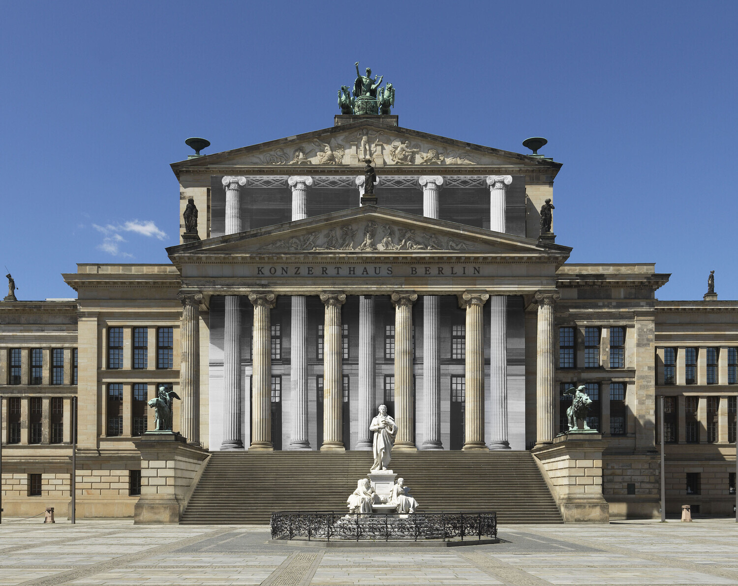 The Konzerthaus Berlin believes music moves people and brings them together. The institution offers the broad public the opportunity to become acquainted with classical music and to pursue their longstanding passion, regardless of their education or social background. The classicist building is one of the main works of the architect Karl Friedrich Schinkel, as well as one of the three spectacular buildings on Gendarmenmarkt - the harmonious ensemble including the German and French Dome. The Konzerthaus is revered as a treasure of German neoclassical architecture. Now host to an exceptionally broad music program, The Konzerthaus Berlin offers symphony concerts, chamber music, music theatre productions, children’s concerts, old and new music, country festivals, and tributes to great musical personalities.