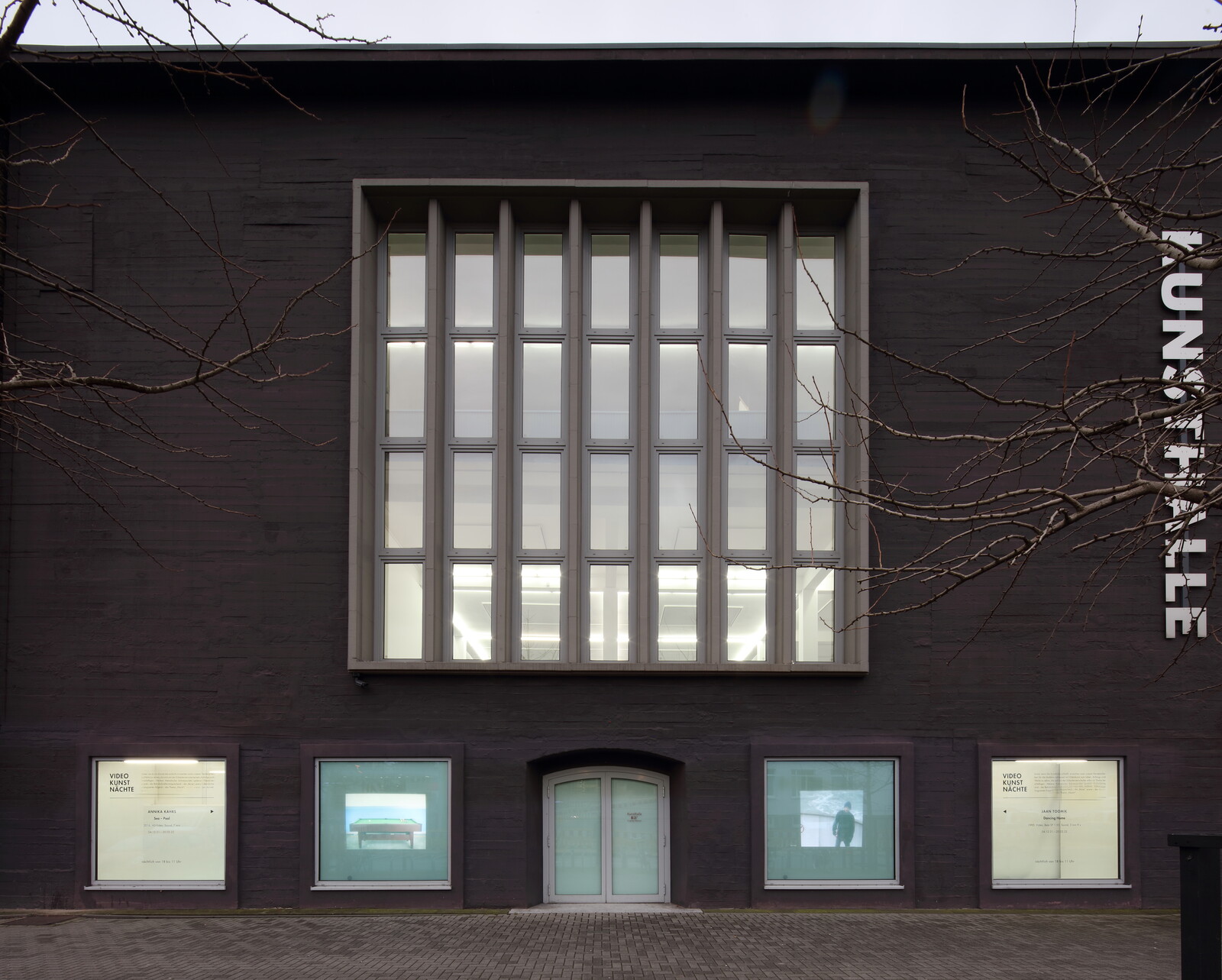 View of nightly winter program “Video Art Nights” since 2021 at Kunsthalle Recklinghausen. Works by Annika Kahrs and Jaan Toomik. Photo: Kunsthalle Recklinghausen/Alistair Overbruck.