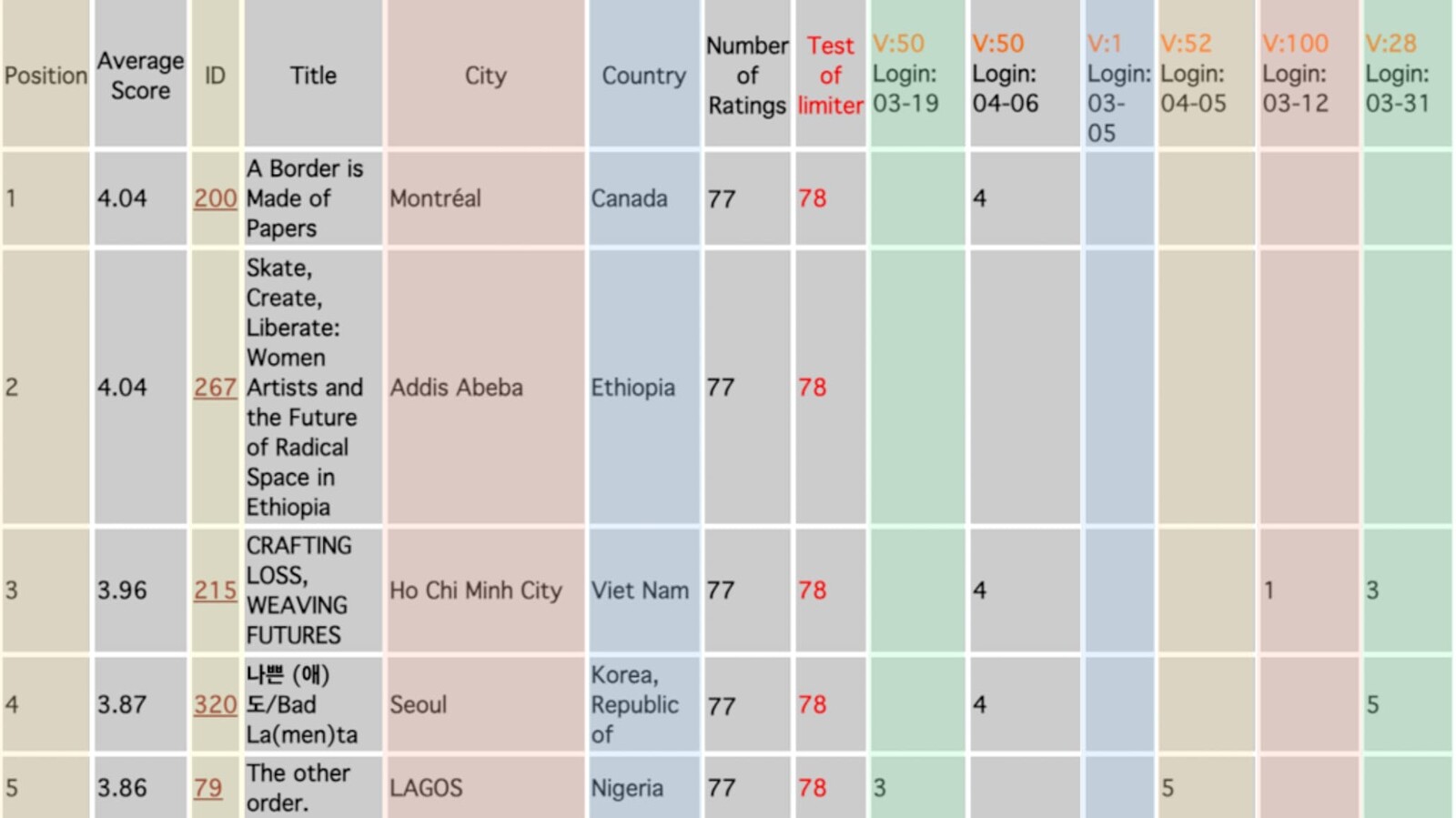 documenta; Venice Biennial; Sao Paulo Biennial; Istanbul Biennial; Whitney Biennial; Berlin Biennial; Shanghai Biennial; Gwangju Biennial; Dakar Biennial; Manifesta; and others.