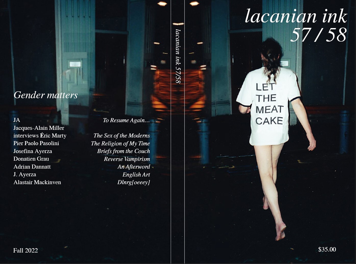 Founded and edited by Josefina Ayerza, Lacanian ink is a NYC-based, biannual publication which continues a tradition of psychoanalytic thought developed by Jacques Lacan through his written word, discourses and utterance. They are known for regularly publishing Jacques-Alain Miller, Alain Badiou, and Slavoj Žižek. Each issue provides an elucidation of Lacan’s ideas and elaboration upon his reflections from various fields of inquiry within a contemporaneous context. To comprehend the published work, though, does not necessitate a thorough understanding of Lacan’s ideas; lacanian ink is an act of discovery, both for the reader and the contributors. Exploring novels, film, poetry, television, the visual arts, philosophical and psychoanalytical texts… the things through which you, as subject, perceive, the writers and artists that contribute to lacanian ink provide a critical analysis of it. It is the intention of lacanian ink to expose the reader to current ideas and perspectives, while fostering a critical terminology through which to evaluate them.