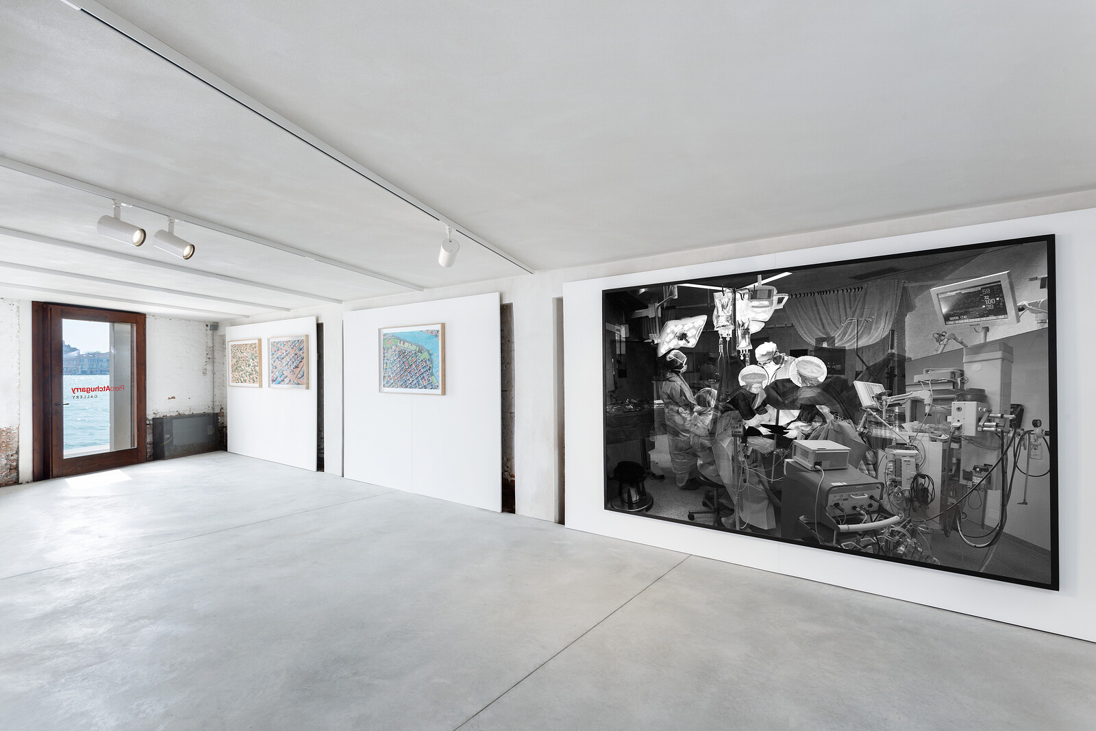 On the occasion of the 60th Venice Art Biennale, Piero Atchugarry Gallery is pleased to present “Embodied Echoes: Stories of Foreign Soul”, a duo show featuring the powerful and interconnected works of internationally acclaimed artists mounir fatmi (b.1970) and Dagoberto Rodríguez (b.1969). As artists leaving in exile, both have personally experienced the raw reality of the migrant condition. This perspective has nourished a sense of belonging to the global horde of emigrants, a community which constitutes the world’s fifth-largest population. But these experiences also deeply influence the artistic production of both artists: it nurtures in fatmi a dedication to dissecting otherness and identity as recurring themes, and in Rodriguez an obsessive interest in the geometry of refugee displacements. The Cuban born, Madrid-based multidisciplinary artist Dagoberto Rodríguez unveils a new video piece titled “Clessidra”, shot in Havana in August of this past year. This work poignantly addresses the tensions associated with human displacement and borders. Rodríguez also presents an ongoing series about Refugee Camps where he translates several of the world’s largest refugee camps such as Zaatari or Dadaab into geometrical abstraction, inviting viewers to reflect more deeply on the permanent tragedy of those transitional cities. Presented in tandem is the work of the Moroccan conceptual artist, mounir fatmi. A selection of several works fundamental to understanding the depth of the artist’s practice is showcased here. “The Blinding Light”, a grand photograph inspired by Italian painter and early Renaissance Master Fra Angelico’s (1395-1455) miraculous scene, questions notions of race, hybridization, orientalism, and identity. The text-based sculpture “Coma Manifesto” utilizes an inscription from fatmi’s manifesto to engage with themes recurrent not only in his oeuvre, but in his personal history, such as reciprocal cultural and linguistic thinking, social dynamics, and the perception of others. This fusion of historical remnants and contemporary introspection echoes the psychological and physical issues involving origin and its nuances. Together fatmi and Rodriguez question concepts of belonging and otherness, shedding light on their own immigrant stories. By the very existence of their works in unison filling the exhibition space, the presentation unfolds in such a way that it becomes a celebration of the foreign, the distant, the outsider, and the indigenous through the lens of these two remarkable artists.