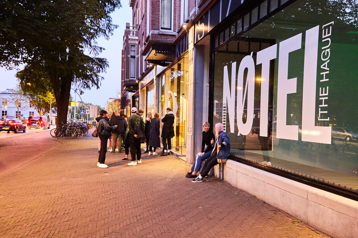 Entrance of Stroom Den Haag during Lawrence: Lek: Nøtel (The Hague), 2018. Photo: Tarona Leonora. Courtesy Stroom Den Haag.