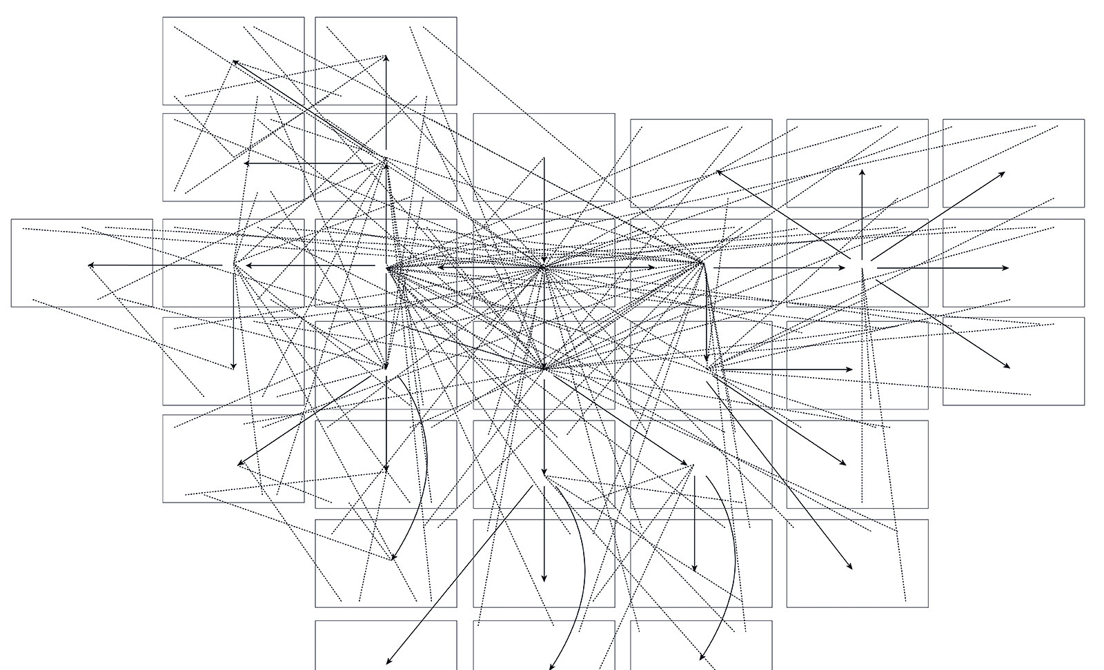The e-flux Index carries on its cover a labyrinth, composed from many winding textual paths, nooks, and crannies. Magazines and labyrinths share a certain nonlinearity. This publication’s ambition is in part to help orient readers through the breadth of two months of e-flux’s broad commissioning across arts, architecture, criticism, philosophy, film, and a whole cosmos of other topics, and to thereby give structure and coherence to the multi-tabbed browsers of an often-cluttered digital publishing landscape. But like any good labyrinth it also remains attuned to the project of radical disorientation. The resultant Index is situated somewhere between a travel guide to the contemporary moment and the Situationist “counter-maps” produced by Guy Debord, Michèle Bernstein, Jacqueline de long, and Asger Jorn for their experimental dérives through the city and the archive.
