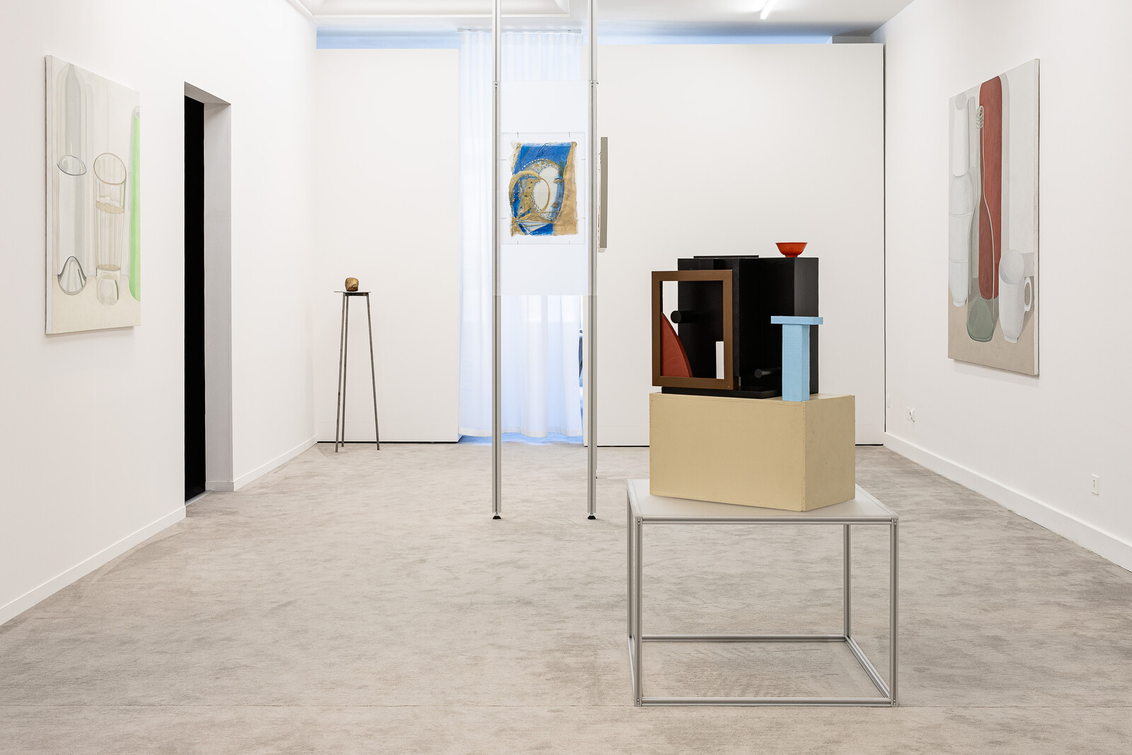 The exhibition closes with paintings and sculptures by Nathalie Du Pasquier (b. 1957), a member of Memphis, the group created by Ettore Sottsass in 1981. While she never abandoned drawing, it is only in 1987 that painting entered her practice. Constantly evolving and often adopting still life as its primary subject matter, over the years Nathalie Du Pasquier’s work developed into what we could call a clear and focused study of perspective.