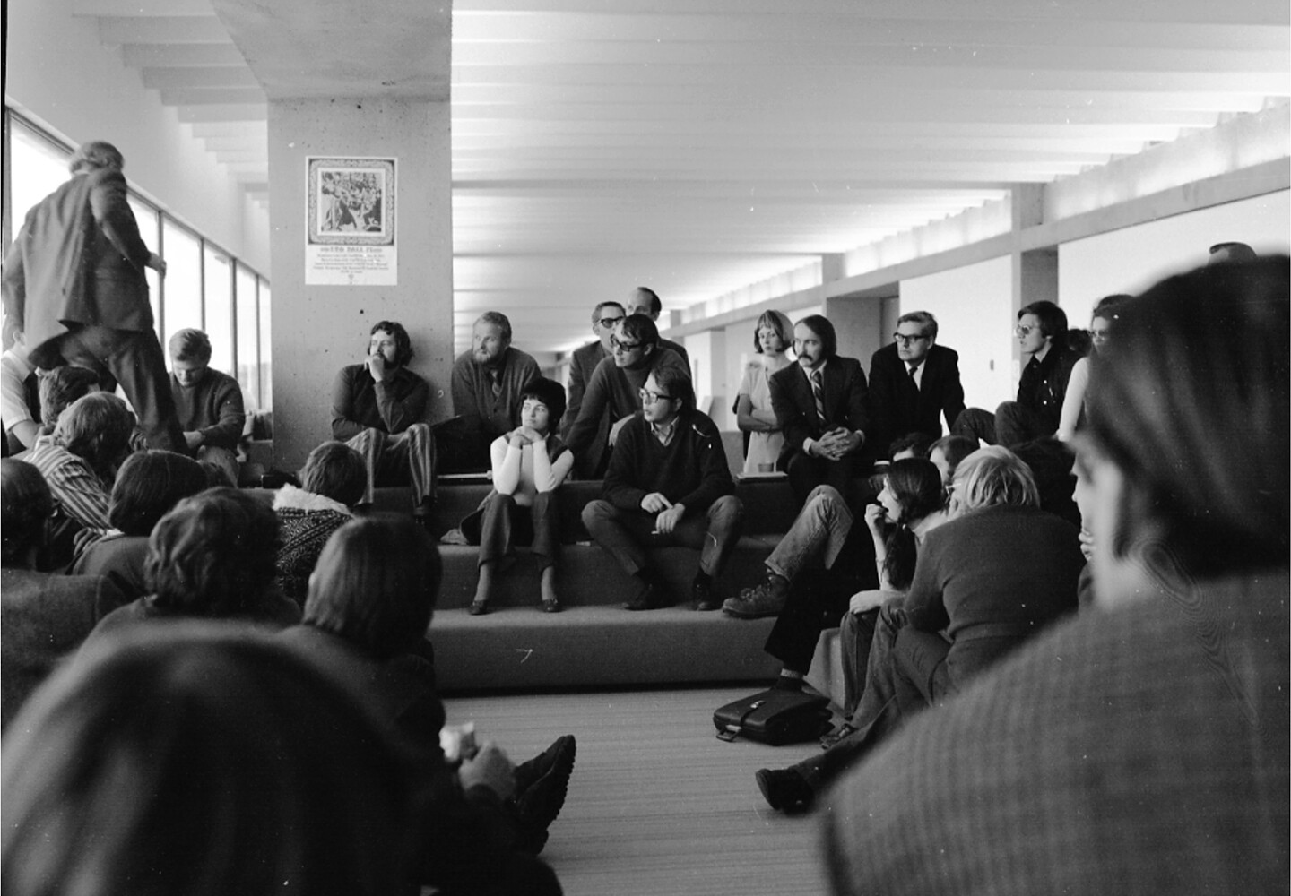 Framed by an interview with architectural historian Victoria Baster and illustrated with archival architectural drawings, curricular material, and contemporary photographs, Encounter Educational Modernism, is a vital critical document on the spaces and potential of universities. Bitter and Weber’s video “Public Seminar”, realised in collaboration with students, brings the 1960s potential of the building in dialogue with the contemporary educational experience.