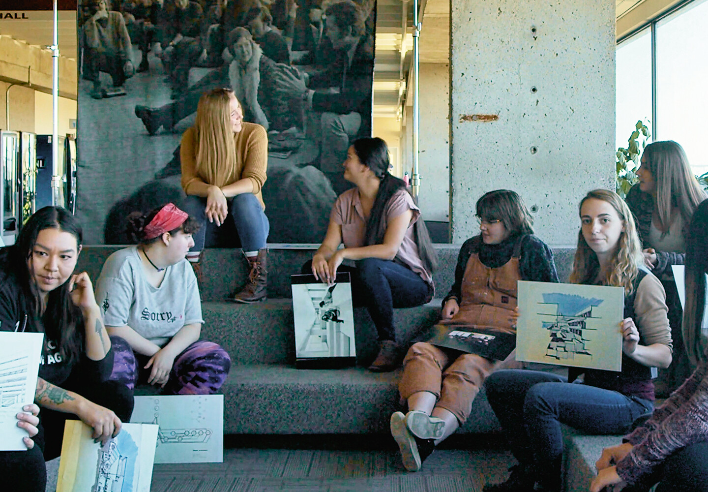 For the second book, Unsettling Educational Modernism, Bitter and Weber formed a group with Indigenous students and faculty (collectively named Guests & Hosts) to question the relationship of educational modernism and Indigenous knowledges and epistemes. Examining the lived experience of Indigenous students at Erickson and Massey’s Simon Fraser University (Burnaby, 1965), they staged workshops in solidarity with the actions against pipelines on Wet’suwet’en land in northern BC. This research-driven project, accompanied by Bitter and Weber’s photographic interventions, examines how the 1960s vision of the modernist university is transformed through Indigenous knowledges.