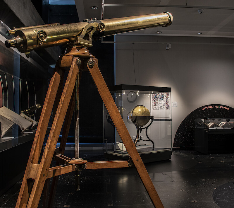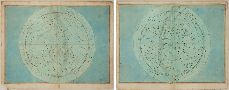Over at Edinburgh University, where Astronomy has been taught since the institution’s founding in 1583, “Astronomy Victorious” examines the exploration of the universe through historic scientific texts and additional works by artists from Ingleby’s roster. Of the texts, Johann Bode’s monumental celestial atlas, Uranographia, provokes wonder and sympathy in equal measure. For by the time Bode’s detailed folio of 17,240 stars and 2,000 nebulae was published in 1801, it was almost immediately superseded by the profession’s uptake of individual star catalogues. Johannes Hevelius’s modest book, Selenography, or A Description of the Moon (1647) is another remarkable object. The result of Hevelius’s systematic and painstaking observations of each phase of the lunar cycle from November 1643 to April 1645, Selenography was the first published atlas of the moon. Its illustrations are an intriguing combination of topographical mapping and visual shorthand reminiscent of abstract art: large, watery spots represent lakes; double horizontal lines, mountains and valleys; smaller circles are mountain peaks.
