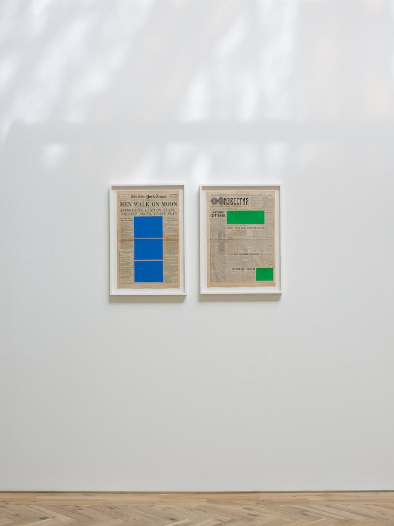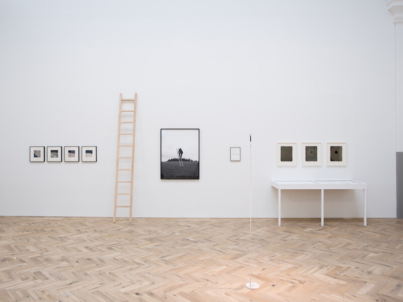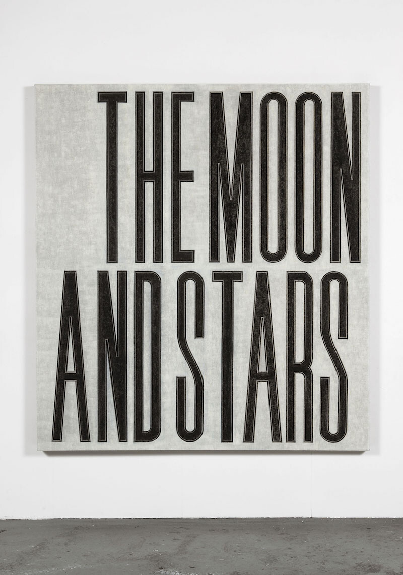 At Ingleby, Peter Liversidge’s From home – how far the moon has, and is, moving away from the earth since the moon landing, July 20th 1969 (2018) is a perfectly judged inclusion. A fabric measuring tape hangs in the gallery 186.2 centimeters off the ground, marking the distance the moon has travelled away from Earth since Apollo 11 first touched its surface. Liversidge’s measuring tape and accompanying proposal (to extend the tape every year until fully extended, 1,000 years after the moon landings) also makes a thoughtful complement to Katie Paterson’s 2017 work hanging in the entrance hall. Letters cut into sterling silver form the nine words of Paterson’s work, also its title: Ideas - (Objects soaked in moonlight for over one million years). Unlike Liversidge’s proposal, however, Paterson’s piece marks her out as a generator of ideas too big to ever be realizable.