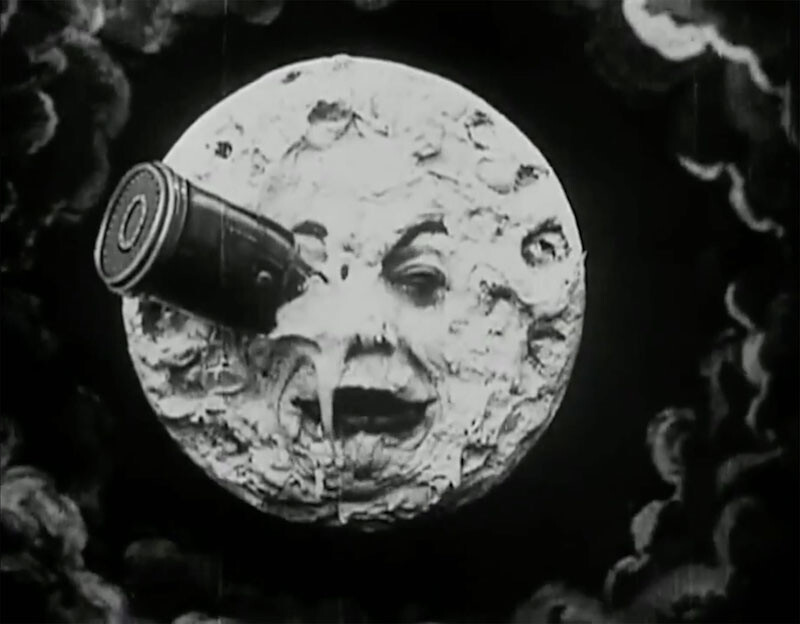 Nearby works by Marine Hugonnier and Georges Méliès perfectly demonstrate the way the moon draws in concepts, however disparate. Hugonnier’s unassuming photograph of a night sky, taken from a found image purchased in a Parisian flea market, is a kind of love poem. Written on the reverse is the phrase “the sky the night we walked on the moon.” This phrase is also the title of her 2013 work and perfectly encapsulates our inexplicable tendency to read romantic symbolism in a mineral-rich ball shining in the dark. By contrast, the anti-imperialist satire of Méliès’s 1902 short film, Le Voyage dans la lune (omnipresent in moon-themed exhibitions, but no less superb for its ubiquity), seems particularly pertinent as techno-optimists continue to imply that escaping to Mars will solve humanity’s Earth-bound problems.
