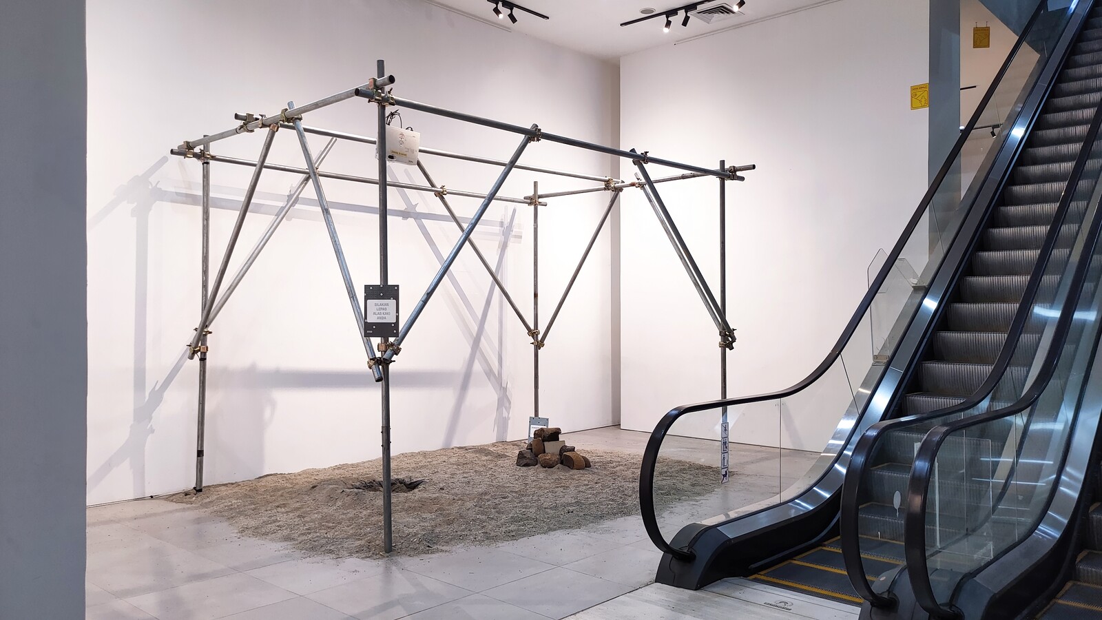 At the main exhibition space in the Taman Ismail Marzuki complex—one of four venues alongside Gudskul, Komunitas Salihara, and Subo—a wall text and timeline is dedicated to the artists and art workers committed to the thankless work of biennial organizing. Yet beyond the attempt to historicize the exhibition and celebrate its continued existence, little information is provided about the curatorial framework of this iteration beyond that it has been organized according to a system resembling the “lumbung” practice of shared resources and nonhierarchical distribution. We learn that the biennale is “being held jointly by the Jakarta arts ecosystem with the main movers being art collectives in Jakarta who are members of the Majelis Jakarta,” or Jakarta Assembly, an umbrella for various collectives and institutions. This decentralized working method might be described as “un-curation.”2