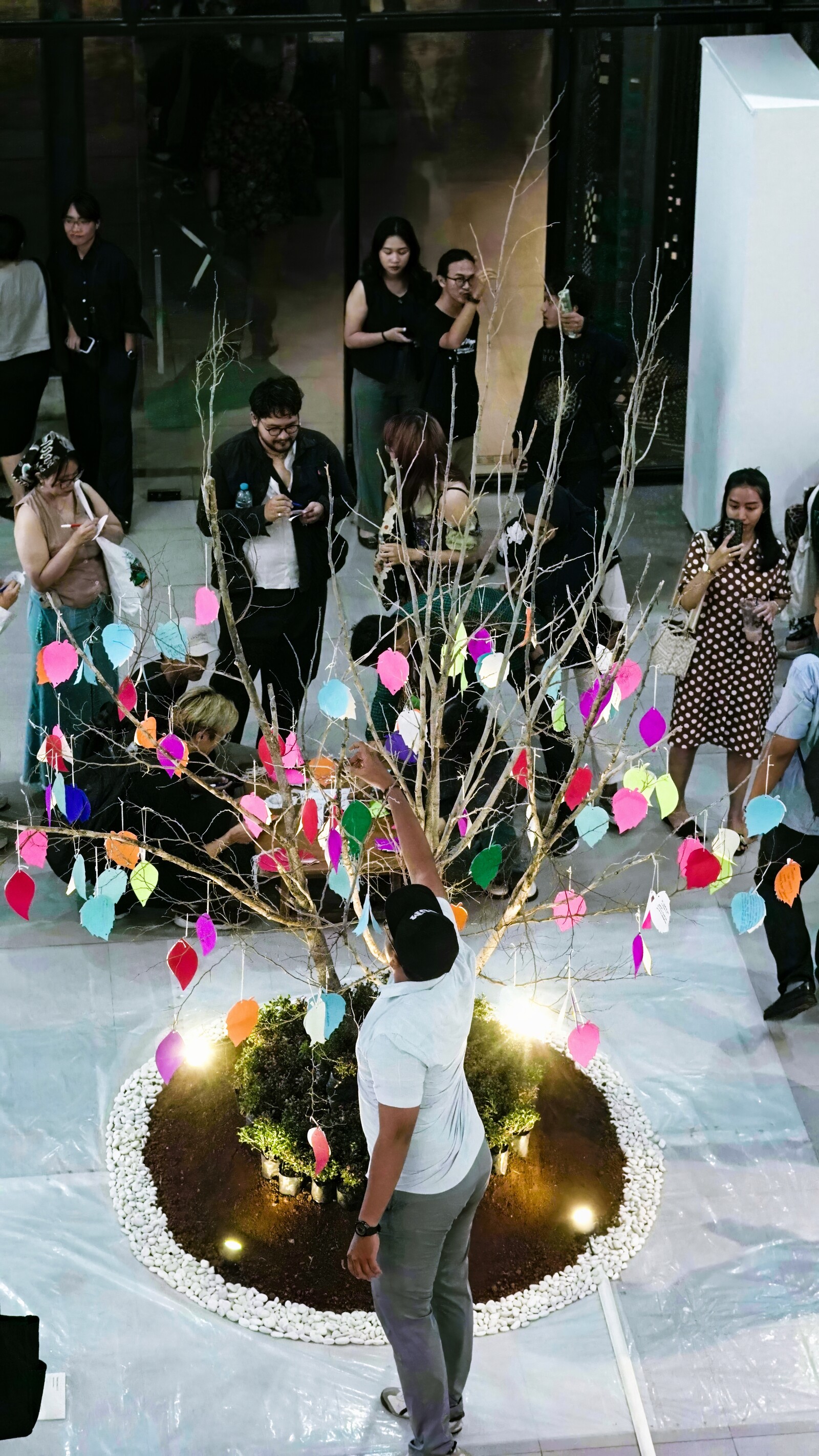 The lumbung practice of this Jakarta Biennale invites participating parties to pool their resources and distribute power equally. Taken to its logical extension, this model offers an alternative form of artmaking that is distant from a center that can no longer hold. As urban conditions become increasingly untenable—as made evident by Komunitas Paseban’s Pohon Cerita (2024), in which visitors are invited to scribble complaints about city-living onto leaf-shaped pieces of paper and hang them on a dried tree—artists might work better and enliven spaces outside of urban “art hubs.” The Jakarta Biennale’s latest change could prompt a new understanding of art and its ecosystem, catalyzing wider change and leaving a powerful legacy by empowering new movements outside the metropolitan centers.