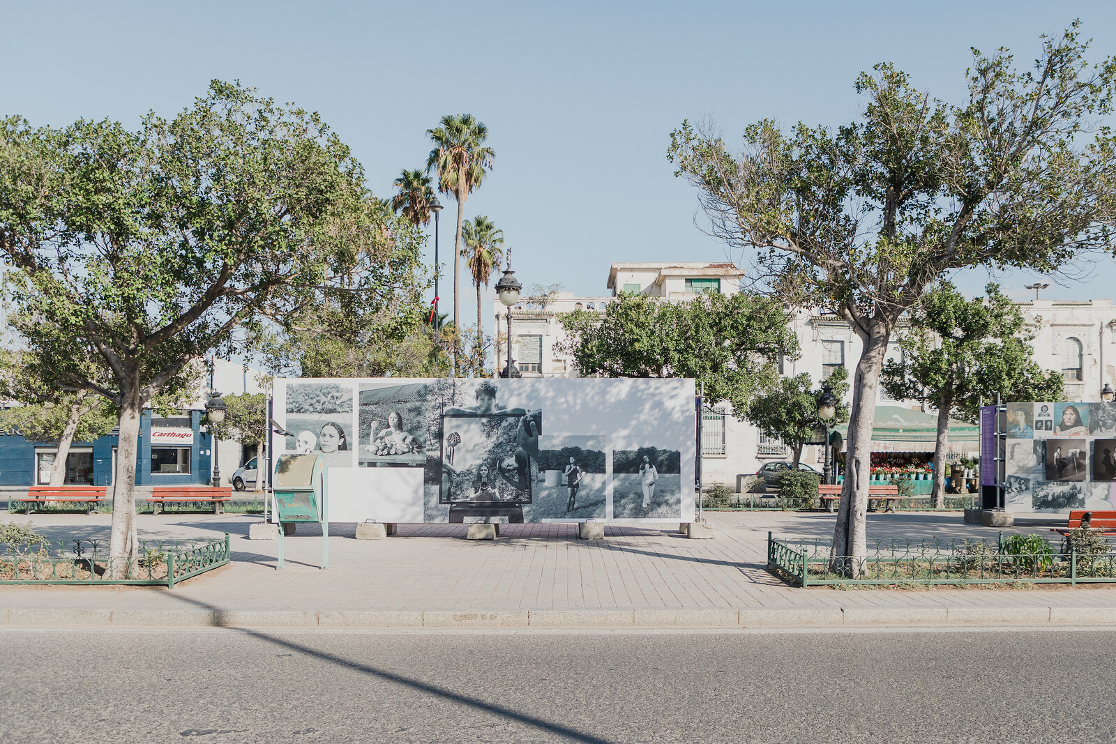 Stirrings of that future emerged in “Unstable Point,” a public exhibition installed on scaffolding stretching down a section of Avenue Habib-Bourguiba’s central promenade. Drawing on Stuart Hall’s assertion that “Identity is formed at the unstable point where the ‘unspeakable’ stories of subjectivity meet the stories of history, of a culture,”1 curator Taous Dahmani selected twelve artists from an open call. The result was a reflection on identity as a condition of perpetual becoming in the context of colonialism and its after-effects, where individuals shaped by historical entanglements cannot but exceed national borders. Take Farren van Wyk’s Mixedness is my mythology (2020–ongoing), featuring the artist and her siblings in striking photographic portraits that synthesize a family history bridging South Africa and the Netherlands via colonization with a contemporary, international pop culture fuelled by American film and music. Or Ilias Bardaa’s Maghrébine (2023), which lays out black-and-white portraits of individuals from the North African diaspora in Europe with text describing their lives over a billboard-sized map of the Maghreb. Making a case for the reformulation of the nation-state construct, the historic instrument of colonialism with its toxic nationalisms, works like these open up what van Wyk calls “a gray area,” in the exhibition text, “where we have the freedom to visualize how our cultures organically merge.” There must be a future in that freedom.