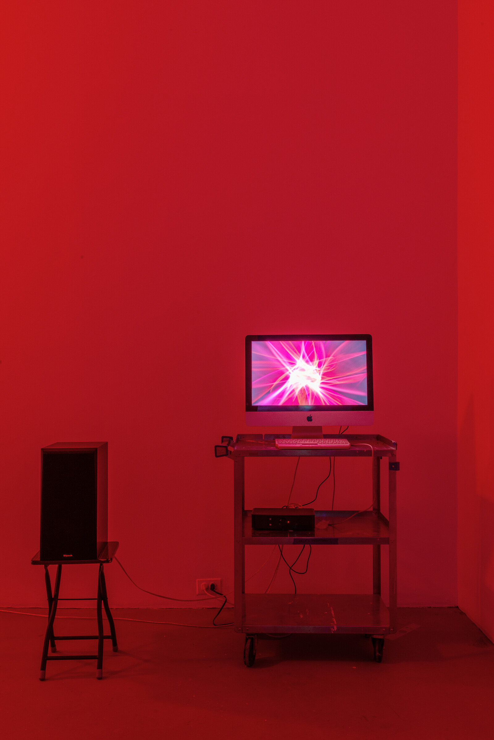 Hirata incorporates a third component of his employment—occasional audiovisual hire at 80WSE—by synchronizing the sound of all six works. The exhibition is front-ended by two video works, Carissa Rodriguez’s The Girls (1997–2018) and Hannah Black’s 2019 Ramey and Raymond (80WSE edit); audio from these pieces, and from three documented performances and readings, overlap between interlocking gallery rooms in which more machinery is on show. A familiar screensaver plays endlessly on a desktop computer in one corner, while a modem and speaker are the lone occupants of another.