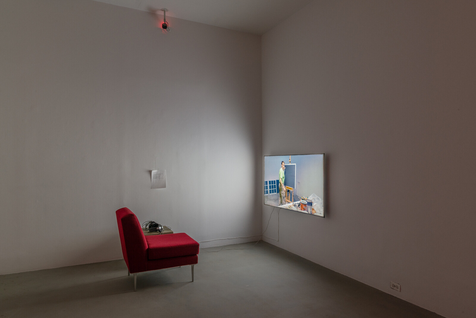 The ambiguity of Jason Hirata’s exhibition title speaks to his ambidexterity as artist and videographer, two roles that fold into one another in this show. Hirata produces videos for artists, as well as documenting live events and providing technical assistance, and this exhibition presents six videos he has worked on. The precise nature of his labor, however, remains oblique or uncredited, the exception being Hito Steyerl’s 2018 video Unbroken Windows (a piece of paper sellotaped to the wall lists Hirata as production manager and director of photography).