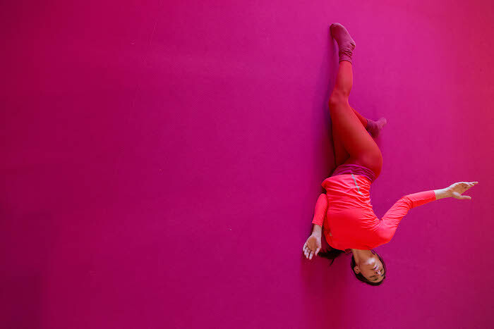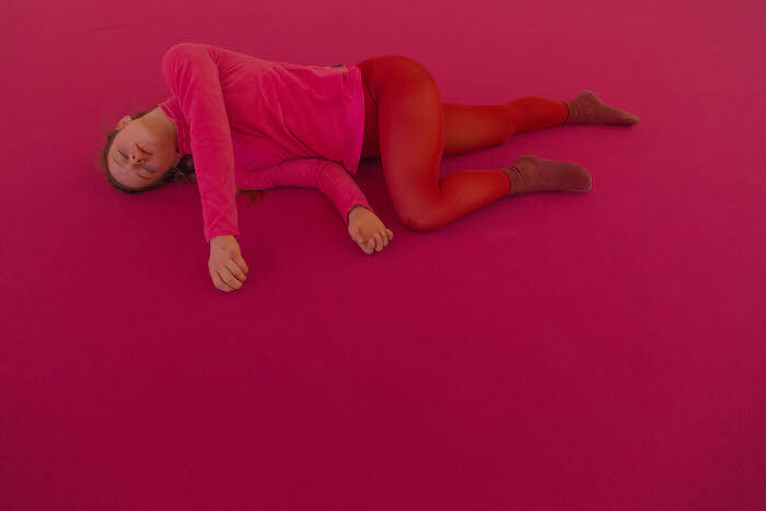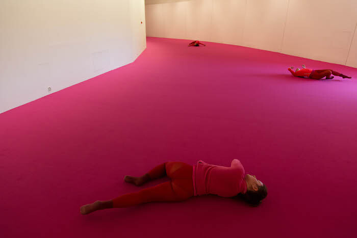 Danzare come se nessuno stesse guardando [Dancing as if nobody were watching] (2017), the new durational piece created by Bel for the occasion, is permanently on show, and unfolds like a device by which to interpret the museum’s architecture. In a large empty space, a solo dancer rolls and crawls across the bright pink carpeting, from one end of the room to another, as if to measure it, in a loop of decelerated gestures accompanied by the loud drone of the “natural” 432 Hertz frequency. I watched Danzare long enough to forget the clock and the phone, while Instagram feeds on the opening of Documenta in Kassel were being flooded with pics of Maria Hassabi’s Staging (2017), an equally slow performance staged on a pink-carpeted flooring. In times of a hysterical attention economy, it’s clear that dance embodies our need for a different speed of consumption. Could alienation, as opposed to forced entertainment, be the answer?
