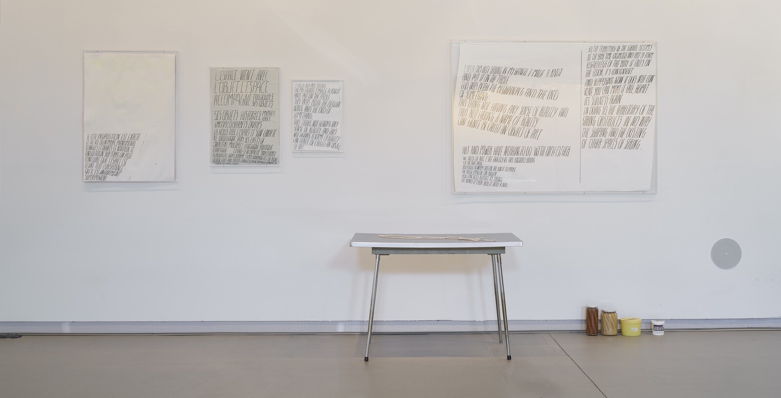 This is largely thanks to a multilingual sound work, written by the artist and composed and edited by Christoph Fink, that echoes throughout the spaces. Short, ruminative texts, spoken in Basque, English, French, and Spanish and interrupted by the occasional snippets of music, lend the space a sonic texture akin to a train terminus frequented by murmuring intellectuals. Some seem to reference the works directly. “In the beginning, I had this rope in my hands,” says a voice beside a table on which a knotted rope is laid. “I tied it in a knot.”