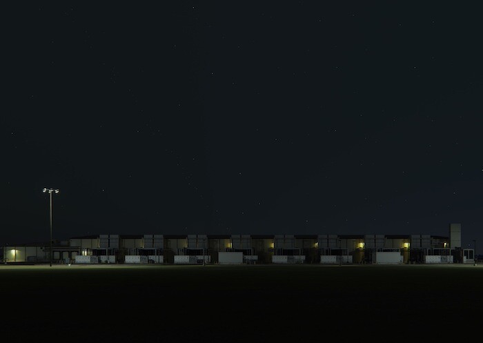 Following a denial of access to a Google server farm in Oklahoma, the artist hired a helicopter to survey the industrial complex from the air. There, giant diesel generators and cooling plants flank the depopulated factory through which our daily wants and means are now trafficked and sold. Gerrard’s recon furnished enough photographic material for the artist to CGI model the façade in todo. In turn, this rendering was sent through a game engine to furnish a hypnotic 360-degree animation, which ceaselessly sweeps around the model at a set inclination. At Thomas Dane Gallery this synthetic POV-shot was projected so as to ape the traditional film loop even though it’s the product of a software framework that renders each and every frame mathematically. Imitation suns rise, set, and cast shadows over the complex attendant to the real-time solar calendar for the actual site. Yet no visual data is stored in the work; each frame replaces the next and is disposed of so that algorithmic procedure takes precedence over all content as the simulation indefatigably rolls on hermetically. And while a trained eye might read various aspects of the façade, the scene is no more transparent than a quotidian Google street view—even if Google wishes to hide it. So then, what is really on view in the gallery? In the most basic scene, the work not only speaks about computing, it is computing itself; however, a fuller image of the internet can be gleaned by viewing the second of the two works on show.