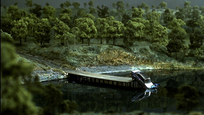 Other models in the exhibition—an old tennis court, a stranded hovercraft—are very elaborate, while those of A Film About a City resemble the sketchy ones of architectural offices: the buildings are made of plywood, the cars and pedestrians of white plastic. Corresponding with their professional realism, Wood and Harrison’s models are not far from what urban architecture today actually looks like.