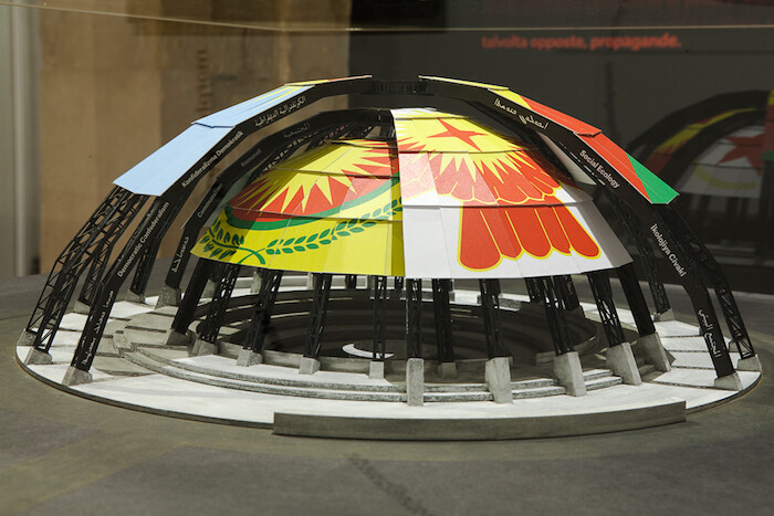 At a conference organized by BAK in Utrecht in 2012, Staal denounced the CIA-supported Congress for Cultural Freedom for producing only a stage-managed simulacrum of what it purported to promote back in the 1950s and ’60s. “That’s very probably true,” I said to myself, “but then shouldn’t he be more careful with how he stages his own New World Summit?” What exactly happens to the emancipatory potential of a temporary global “parliament” when the invited representatives of stateless peoples, including some organizations accused of terrorism, are put on display in an architecture based on their various flags sorted by color? Is “giving form” (vormgeving, Dutch for “design”) really compatible with “giving voice?” And isn’t the very ambition to remedy perceived lacks through benevolent “giving” a crypto-paternalistic fallacy of art activism?