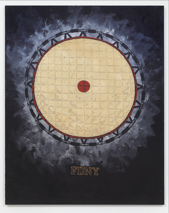 The first work we encounter is Martin Wong’s FDNY (1988), one of a number of works he painted about his beloved firemen. Lots of people love firemen, of course, and New Yorkers in particular, but when Wong painted two of them kissing in Big Heat (1988) he dramatized both the distance and the similarity between the public’s love of fireman and his own. If we all like kissing, and we all like firemen, what’s wrong with two fireman kissing? It’s the kind of playfully powerful juxtaposition that would come to be associated with another Group Material member, Félix González-Torres. FDNY depicts a kind of trampoline that the department used to catch people jumping from a burning building. A life-saving instrument deployed as a public service, the trampoline is the perfect antithesis of the public response to the burning building called HIV, a response that arrived too slow to save any of the 500,000 Americans who would die of AIDS-related illnesses by 2005.