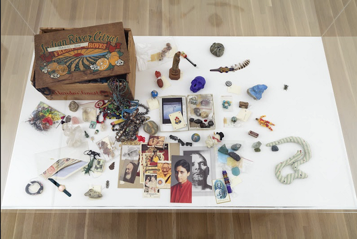 Ault’s archive has traveled some: to the Museum für Gegenwartskunst, Basel; Culturgest, Lisbon (both 2013); and the 2014 Whitney Biennial here in New York. I don’t recall you being mentioned there but here, among a galaxy of personal objects, she has hung a text on the wall about you—a correction to an essay she once wrote for James Benning2. It’s sitting next to an announcement for the US Marshals’ auction of the Unabomber’s—that is, your—personal belongings. I know you believe this violated your freedom of expression… but it’s a tricky business, you have to admit. They raised money to compensate your victims’ families, after all. Anyway, Julie recalls how the recent discovery of a letter of yours pushed her to rewrite her story. You could say the same for most of the other objects on show, some of which are artworks, others not, including firefighter equipment given to Martin Wong by the FDNY, David Wojnarowicz’s personal magic box, and, just next to your auction announcement, a text by Ault recalling her personal and difficult affection for her grandmother.
