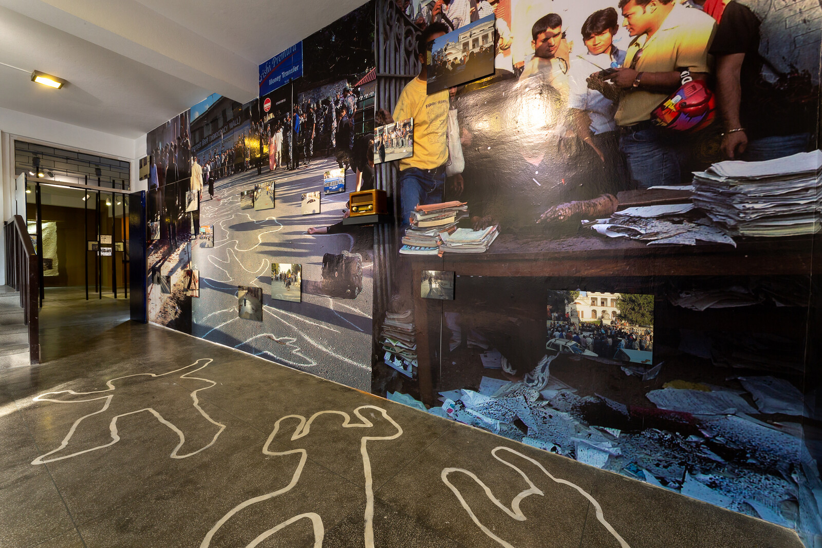 On May 1, 2004, Ashmina Ranjit covered her body in black ink and walked toward Singha Durbar, the seat of Nepal’s government, alongside more than 100 individuals dressed in black, who fell to the ground in pairs and in turn. This die-in was staged through complex negotiations with different communities. At the time, the street performance marked the climax of a decade-long conflict where disappearances became common, and is now memorialized through white-chalk body outlines leading to the entrance of the Nepal Art Council (NAC), as well as the photographic and aural documentation that forms Happening: Present Situation (2004). In the aorta of the space next to these chalk-outlines hangs a Mithila painting of acrylic on lokta paper. Komal Purbe’s A woman flying a rocket (2019) depicts a woman sitting in the nose of a rocket ship composed of turtles, birds, and fish. Aïsha Devi’s forceful score to Subash Thebe Limbu’s single-channel video Ningwasum (2021–21) floods the hallway. A form of Adivasi Futurism that Limbu has developed for many years, the cast of Subin Limbu and Shanta Nepali appear as time travelers from the future who communicate melancholic poetry via telepathy. Filmed mostly in the Himalayas, which includes the shamanic home of the Yakthung (Limbu) people, the mothership appears to us as futurist Indigenous technology modelled after a ritual object called Silam Sakma. The NAC is located near a slew of government ministries, spurring a dexterous curatorial consistency that articulates politics as a space of negotiation.