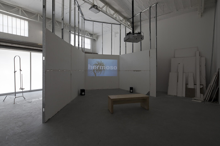 For her first exhibition in Mexico City, LA-based artist Kerry Tribe removed the front wall of Parque Galería and transformed it into a makeshift screening room. The crumbling architecture, with its exposed dry walls and frayed edges, introduces an exhibition in which seemingly solid physical and psychical structures are undone.
