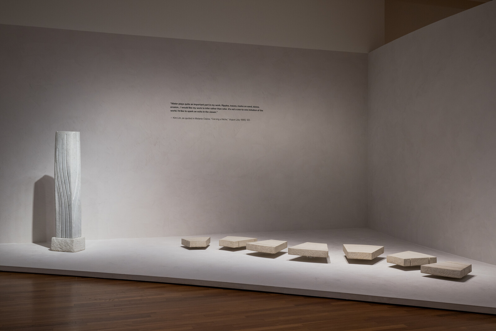 This is an important conversation to initiate, and it is hard to disagree with this line of thinking. But ultimately, the most valuable thing that “The Space Between” provides is not a scholarly framework, but a direct encounter with her work. By her own account, Lim’s abstraction relies on “material that came from the seen and felt world,” yet magically confuses and confirms our habitual perceptions of it. A memorable work from her late period is Padma III (1985), named after the Sanskrit word for lotus, which at first glance, resembles a sturdy stone boundary marker rather than a delicate flower. But closer inspection reveals its subtle design. Vertical lines carved into stone separate the sculpture into four segments. Appearing closely pressed to each other, every segment is gently bulging in the middle as if growing fat. Despite the work’s stout, bulky form, it still evokes the process of creamy, slow expansion—like lotus petals opening up to the sun.