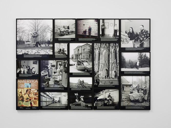 Of the works that Żak | Branicka has selected for the current exhibition, two in particular show, respectively, what enables resistance and what happens if the counterpart gives way. The first, dating from the time when KwieKulik weren’t allowed to travel abroad, is a performance documented in a series of 25 black-and-white photographs, The Monument without a Passport (1978). In 1981, their passports were reissued, allowing them to travel to the West two months before martial law was imposed in Poland. The futility of resistance is represented by a performance called Supermarket (1981), recorded on video in a grocery store in Stuttgart as part of KwieKulik’s participation in the exhibition “New Artwork from Poland” at the Künstlerhaus Stuttgart. The works exemplify artistic reactions to two different kinds of repressive apparatuses, as Louis Althusser would have called it. In both situations, the artists were astutely aware of the power relations that shape their activities.