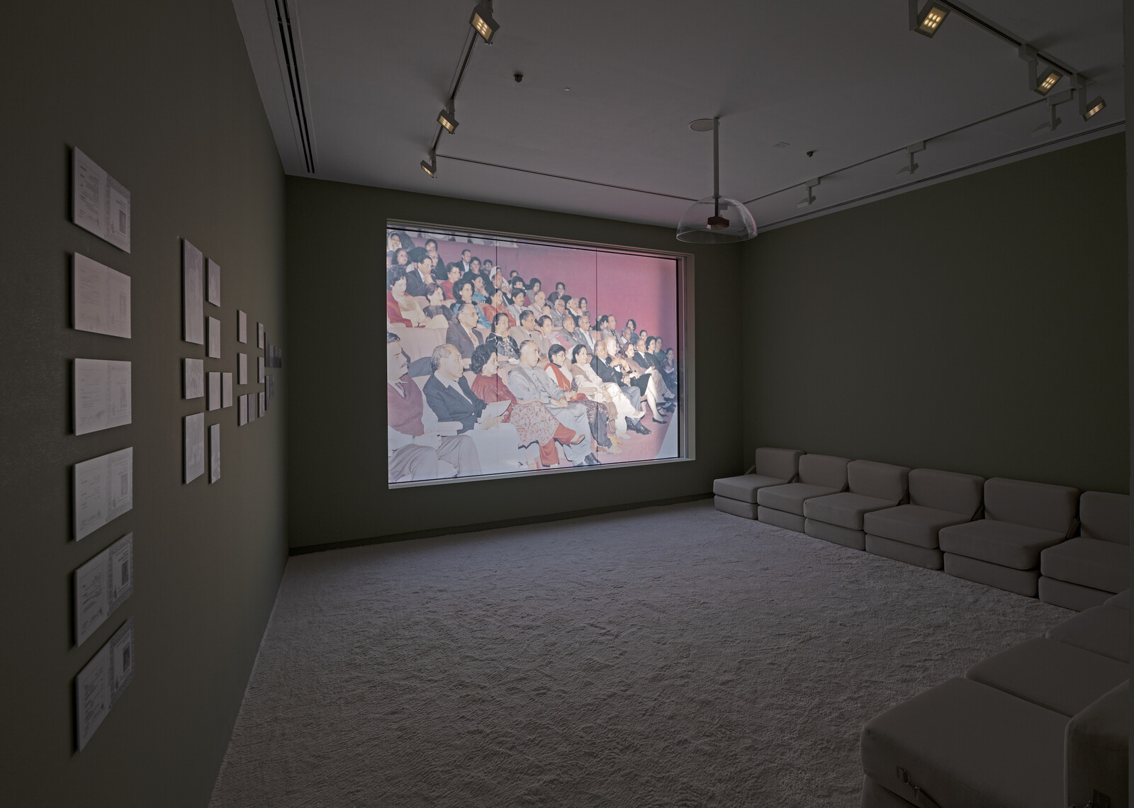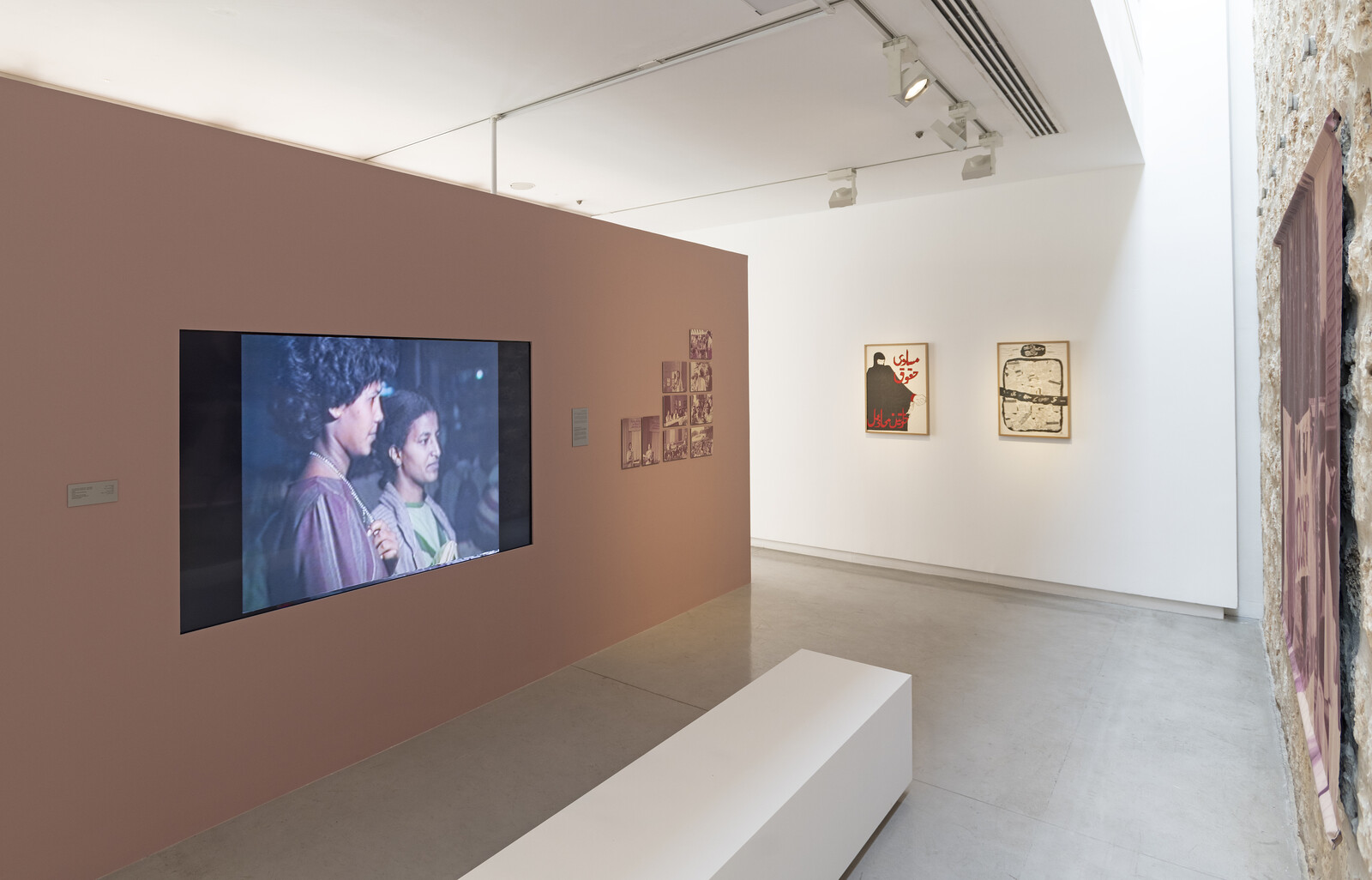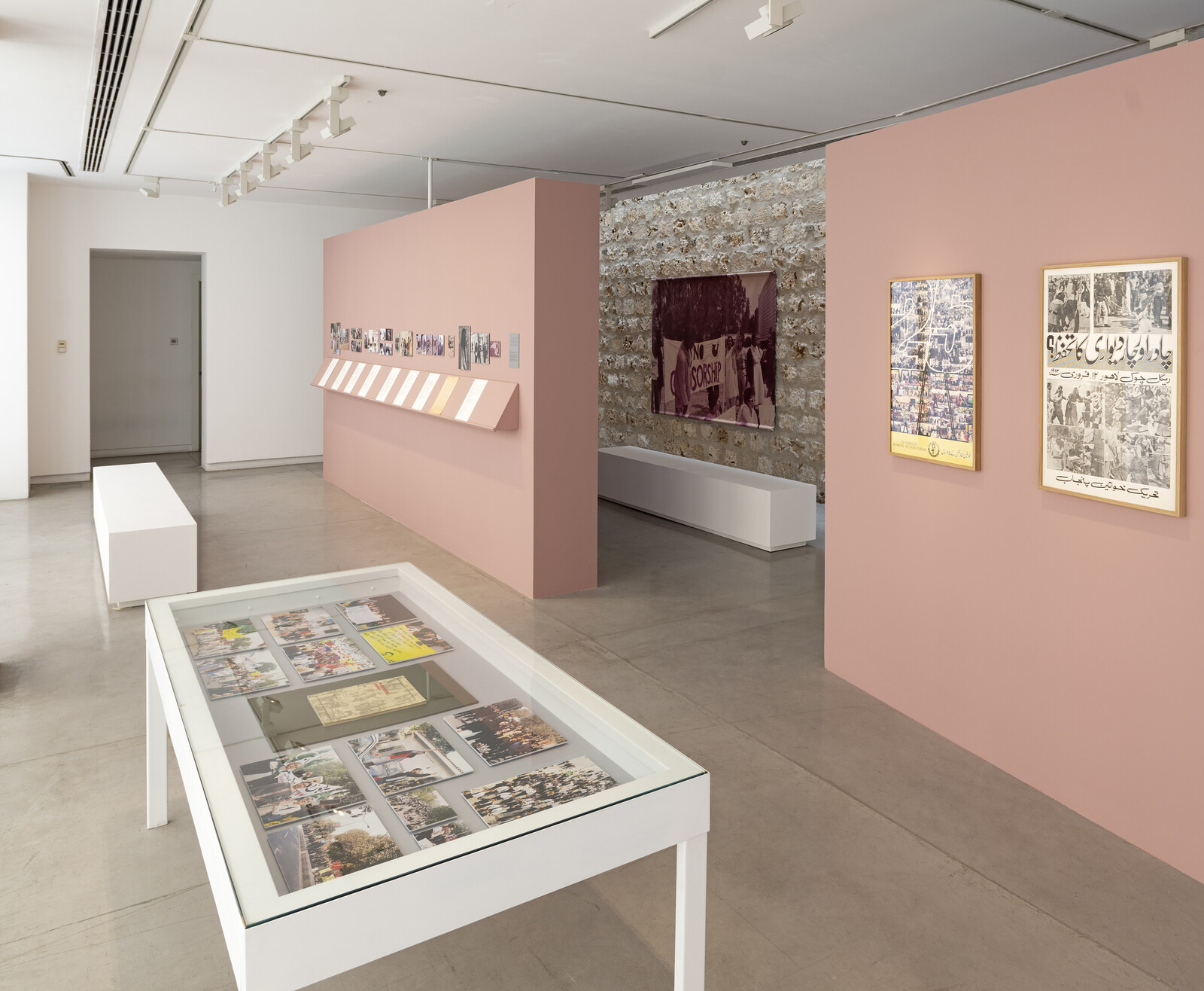 Lala co-founded the Women’s Action Forum in 1981, a grassroots feminist organization established to challenge misogynist laws and policies introduced by the military dictatorship of Muhammad Zia-ul-Haq.1 This, and Lala’s other political activism, is presented at Sharjah Art Foundation through extensive archival displays that include photographs and videos from protests and conferences, testimonies from comrades, students, and friends, posters Lala designed and produced herself, and a screen-printing manual for activists (titled In our own Backyard) that she published in 1987 to counter the regime’s ban on independent printing presses. As the leader of a novel Master’s program at Lahore’s National College of Arts, Lala also introduced a curriculum that encouraged experimentation and interdisciplinarity, as seen in the facsimiles of syllabi and publications available for perusal. She also devoted time to the All Pakistan Music Conference, a platform for promoting and preserving Hindustani classical music co-founded by her father in 1959, which immersed her in this rich tradition from a young age. Photographs, CD covers designed by the artist, and an hours-long playlist of recordings from the early 1960s show this important vein of her multifaceted life and practice.
