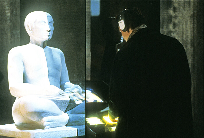 JFL: We arbitrarily and quite purposely created a kind of filter, since there were so many things to exhibit that our very first worry was about how to go about dealing with it all. There was never any pretense of doing some sort of universal exhibition. Universal exhibitions are no longer possible, and that’s more than just a question of budgeting. And so what were our criteria of selection? They were on three different levels. First of all, we wanted to exhibit things that inspire a feeling of incertitude: incertitude about the finalities of these developments and incertitude about the identity of the human individual in his condition of such improbable immateriality. That’s a criterion of selection that’s concerned with the philosophical stakes of the exhibition. Then we obviously had to give attention to the arrangement of the show in terms of time and space. And here we appealed to two principles: no fancy mouldings and no pedestals. We didn’t want still another re-evocation of a gallery or a salon, by which I mean an arrangement of rooms in a royal palace as designed by the king. We wanted to avoid this way of squarely defining things and we had to discover a more fluid and immaterial system for the organization of space.