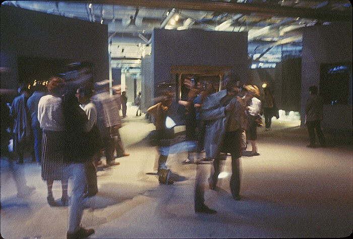 “Les Immatériaux” roughly translates to “the immaterials” or “the non-materials.” These materials are new in that they newly challenge our relationship to the world, whether through the dehumanization of technology or by the faltering of man’s mastery over nature. And so the exhibition was filled with computers (sometimes malfunctioning), but also artificial skin and works by artists including Giovanni Anselmo and Dan Flavin. The experience was intended to be full of slippages, a bewildering dramatization of what the profound uncertainty of our contemporaneity feels like. The critics hardly warmed to such a chaotic atmosphere, yet artists who saw the show felt quite differently. “What I think was really beautiful in ‘Les Immatériaux,’” Dominique Gonzalez-Foerster recalled, “was the exploration of all the dimensions of light and sound by means of infrared and text. The viewer’s movement was taken fully into consideration.”3 For Philippe Parreno, “’Les Immatériaux’ was an exhibition producing ideas through the display of objects in a space.”4