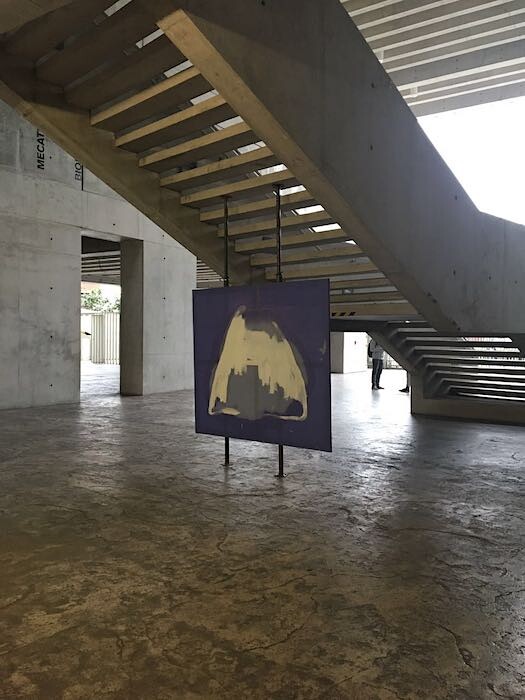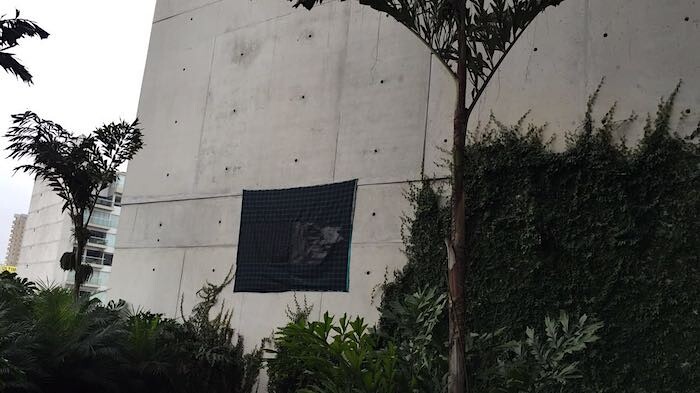 Revolver Gallery, in Lima’s Miraflores district, also displayed works that used fabric as their materia prima, but rather than exhibit in the gallery, artist Jazmín López elected to exhibit her solo exhibition “A negro, E blanca, I roja, U verde, O azul” offsite, dispersing her work throughout the University of Engineering and Technology of Lima (UTEC).
