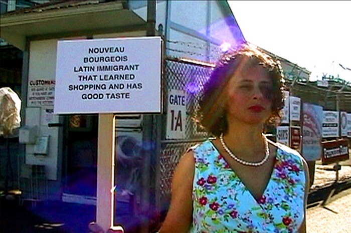 Proyecto AMIL presented “Videos de esta mujer: registros de performances 1997-2010,” the first comprehensive solo exhibition dedicated to the work of Peruvian feminist performance artist Elena Tejada-Herrera, curated by Florencia Portocarrero. Heavily influenced by the theater of daily Limeño street life, as well as by the terrorism and humanitarian violations committed by the regime of Alberto Fujimori, Tejada-Herrera’s work is indicative of a kind of South American political-conceptualist practice that evolved largely outside the influence of earlier performance artists in the United States and Europe and that is only just beginning to receive its due.