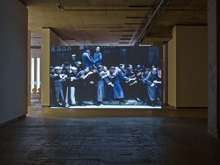 At Frith Street Gallery, Raqs Media Collective present a body of new works also related to the history of printed news. Unfortunately, the title of their exhibition, “Corrections to the First Draft of History” is presumptuous and portentous, and the exhibition itself follows suit. The eponymous work (2014) is made up of an array of newspapers over which the artists have painted cryptic words or sentences such as “0 Nought [Cypher]” and “LETTERS COMPOSED OF STRAIGHT LINES.” The most visually arresting work exhibited, Rerun (2013) is a large video projection of actors recreating a photograph by Henri Cartier-Bresson depicting a bank run in Shanghai in late 1948, on the eve of the revolution. The subject may be politically loaded, but because the artists merely quote the image and stake nothing as to its contemporary relevance, Rerun is lost in history. In Raqs’s hands, time is nebulous and abstract, its politics unmoored and floundering.