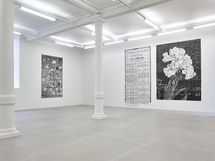 Display plays a role in the way a viewer would access any of the works above, but many of the galleries in the city have pulled out the heavy guns in honor of the event that is Frieze London. At Marian Goodman, “More Sweetly Play the Dance,” a show of recent works from William Kentridge that are much the same as his previous projects. Alongside More Sweetly Play the Dance, a massive eight-screen video installation, is a series of paintings making reference to the events of the Paris Commune and the Cultural Revolution in China, which are then used as imagery in a new three-screen film installation, Notes Towards a Model Opera (2014–2015) alluding to the political dimension of the imagery without ever saying much about it or giving any context. Similarly flirting with the political but never offering substance is Oscar Murillo, who is showing footage from his hometown in Colombia at his “binary function” exhibition at David Zwirner (accompanied by many canvases, of course, and black paintings made with dirt reminiscent of the black flags he presented at the current Venice Biennale). While the video Meet me! Mr. Superman (2013-15) isn’t political—it’s a short depiction of a social situation, men meeting at a cafe—its inclusion in the upscale gallery, complete with dirty white plastic chairs for the viewer to sit on, reads as a naive (if not flat-out cynical) wink at inclusion of content from locations not often represented in Mayfair.