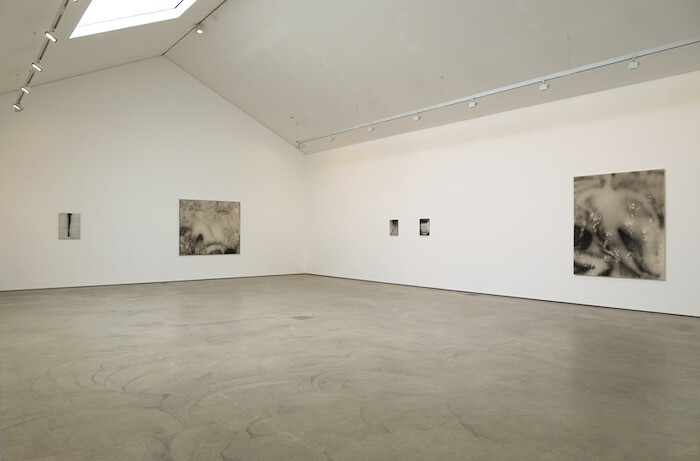 What Murillo’s presentation overlooks is that it’s okay (especially at an art-fair time of year) to show painting without pretending that it is political. At Wilkinson Gallery, Phoebe Unwin’s exhibition “Distant People and Self-Soothing Objects,” presents a series of grayscale paintings veering from traditional art-historical subjects, like a body in nature, to much more contemporary ones, such as a head with headphones on. The traditional, painterly technique (Indian ink on canvas or board) is contrasted by the fact that the works are reminiscent of early black-and-white photography. Or was my viewing of it conditioned by my exposure to technology? Phone (2015) nearly answers that question: it is almost abstract but the brushstrokes imitate the traces left by a greasy fingers on a glass screen.