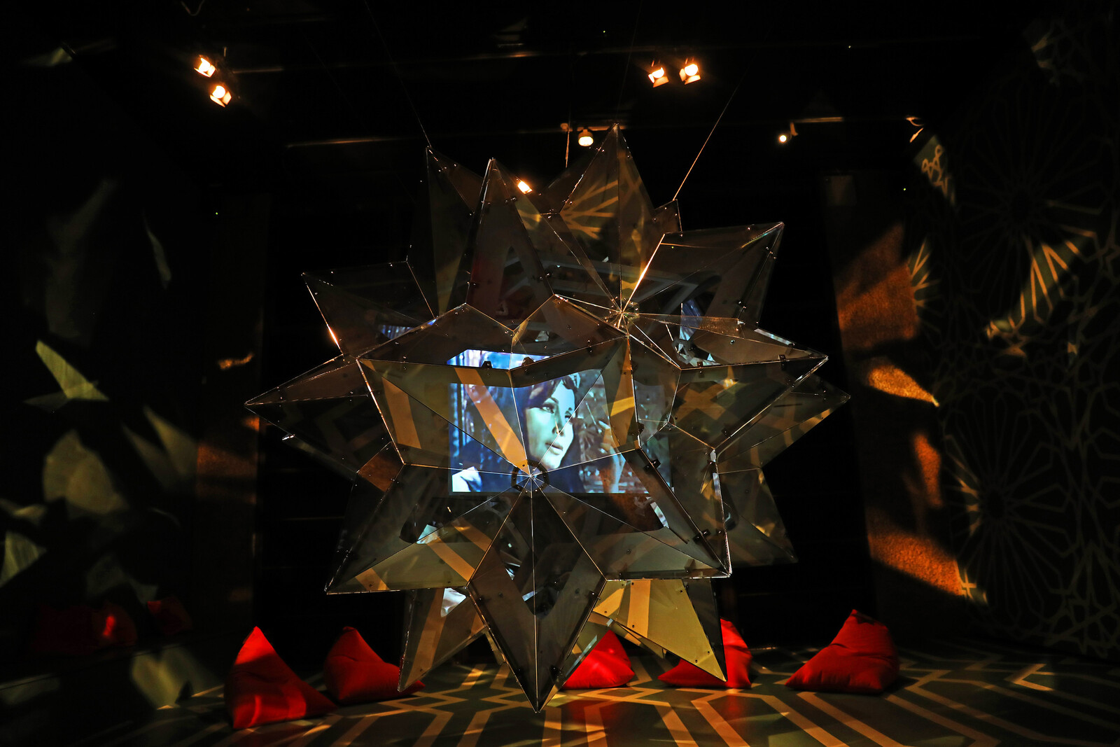 The 27 other portraits in “Rebel Rebel” follow a similar pattern: clear-eyed depictions of formerly successful artists, with biographies that detail their achievements, followed by their choices after 1979⎯to renounce their work, face imprisonment, or leave the country. At the end of the hall is a large, crystalline structure housing a screen, on which a collage of the assembled women’s work plays, their words and music echoing through the space, the art of Iranian woman past refracting onto the protests of Iranian women now. Art is not a haven, Sokhanvari reminds us, or an escape. It is an attempt to still the world for a moment; to apprehend some lost or hallucinated corner of it; and to glimpse the shape of pasts, presents, and futures in the dark.
