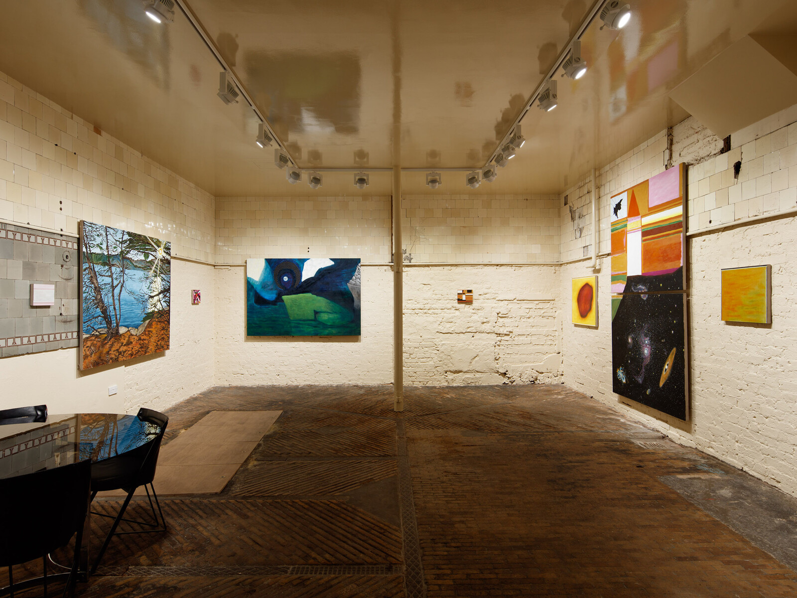 I blinked. Wasn’t this installation saturated with green? Looking up, I saw that the fluorescent bulbs had changed to white; peering through the window, the street looked its normal shade. I wondered if the lights had been set to fade in and out on a timer. But when I held up my phone to take a photo the screen pulsed rhythmically, as though the green fluorescence was jamming the signal. That I hadn’t noticed my eyes adapting to these conditions felt integral to the work: a color had become invisible to me by dint of its universality.