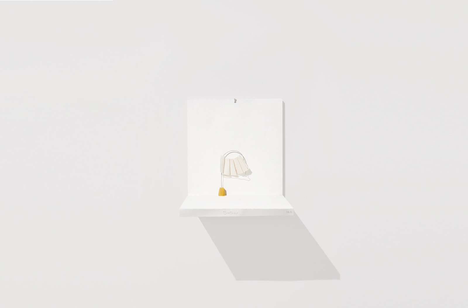 At Modern Art, a set of small shelves jut into the gallery rooms, each bearing a tiny sculpture of metal, paper, and wood, hastily assembled twists and shapes. It’d be insulting to call them maquettes, as they more than hold their own, but you can sense the precarity and speed behind this minuscule body of work by Richard Tuttle. You Can’t You Have to Buck Up (2019) is a small metal circle, a short band of black drawn on the top, pushed into a wadge of gray putty; Brother (2019) is a sail made of wire, an accordion of white paper zig-zagging across it, held up by a thimble-like wedge of amber-colored resin. Even though made last year, the activity of creating these slight objects feels like a way to mark the days passing.