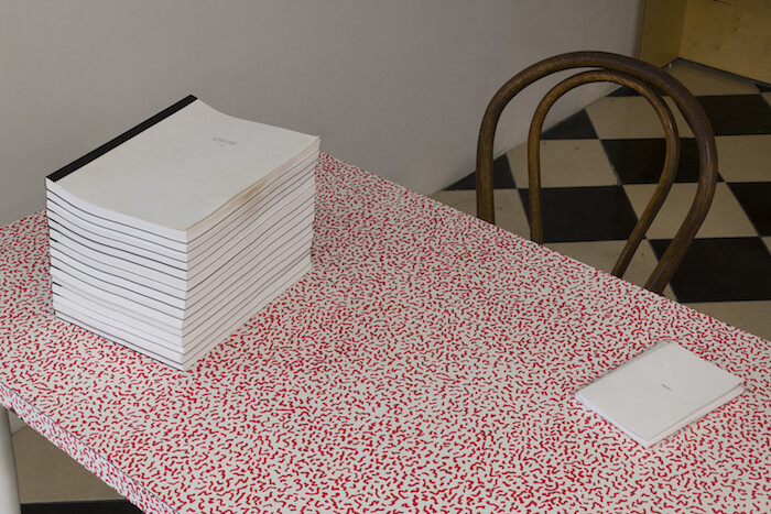 As a staking out of a network of sensibilities—the identification of a palette of shared or coinciding tastes and intellectual agendas—this gallery share is most illuminating. That is not to say it is undifferentiated. One travels a long way, for instance, from Nathan Hylden’s taut, serial process paintings to Yui Yagushi’s tiny, sumptuous near-monochrome canvas (both presented by Misako & Rosen), then to Alex Olsen’s brushy, improvisational oil-on-paper abstractions (presented by Park View/Paul Soto) and Marie Matusz’s installation Dreamers Don’t Sleep (2017), a large gray hammock made from sunshade mesh (presented by Jan Kaps), all of which share the main space at Kristina Kite with a print edition by the nebulous “off-space” Pied-à-Terre, represented in the project chiefly by a book of artists’ writings which appears at each gallery. As an introduction to the large selection of exquisite, intimate black-and-white photographs from the 1980s by Hervé Guibert, presented by Callicoon Fine Arts in the following space, these works do not make a whole lot of sense, but as part of a wide constellation of interests, they feel at home.