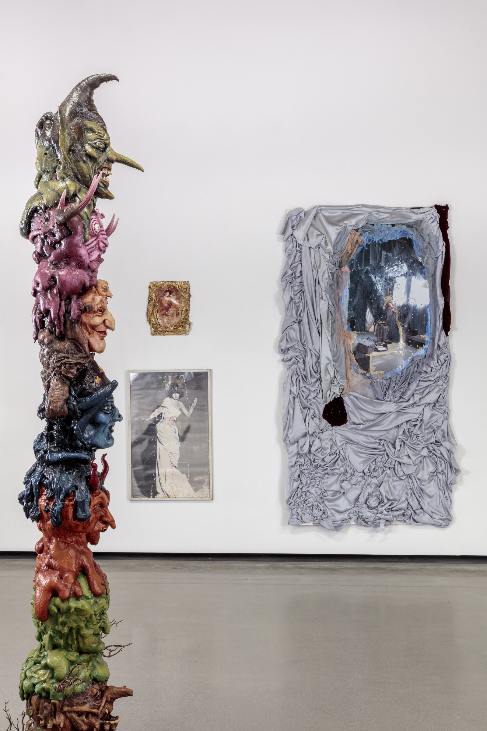 Though this city is filled with the iconoclastic fantastic, its galleries during Frieze week seem more determined to exploit a bygone image of subversion than to risk getting lost in its twisted logic. In “All of Them Witches,” curated by Laurie Simmons and Dan Nadel at Jeffrey Deitch, the wily power of images is not so much channeled as diluted into an exasperated index of “something-possibly-weird-and/or-sexy.” In clinging to a purely aesthetic idea of “witchiness,” the show fails to capture, or specify, the narrative mechanisms and psychological motivations that give the witch her proverbial flight. The witch is about broken boundaries and disturbed definitions: about “living deliciously,” as Black Phillip incants in Roger Eggers’s The Witch (2015). Never mind how delightful the devilry of Marnie Weber’s totemic hags, photographs from Cameron Jamie’s Front Lawn Funerals and Cemeteries series, or Greer Lankton’s trash-glam puppets are on their own; amidst 170 mostly wall-based works, you remain so firmly grounded in the blah-real of a commercial space that it all fails to hex.