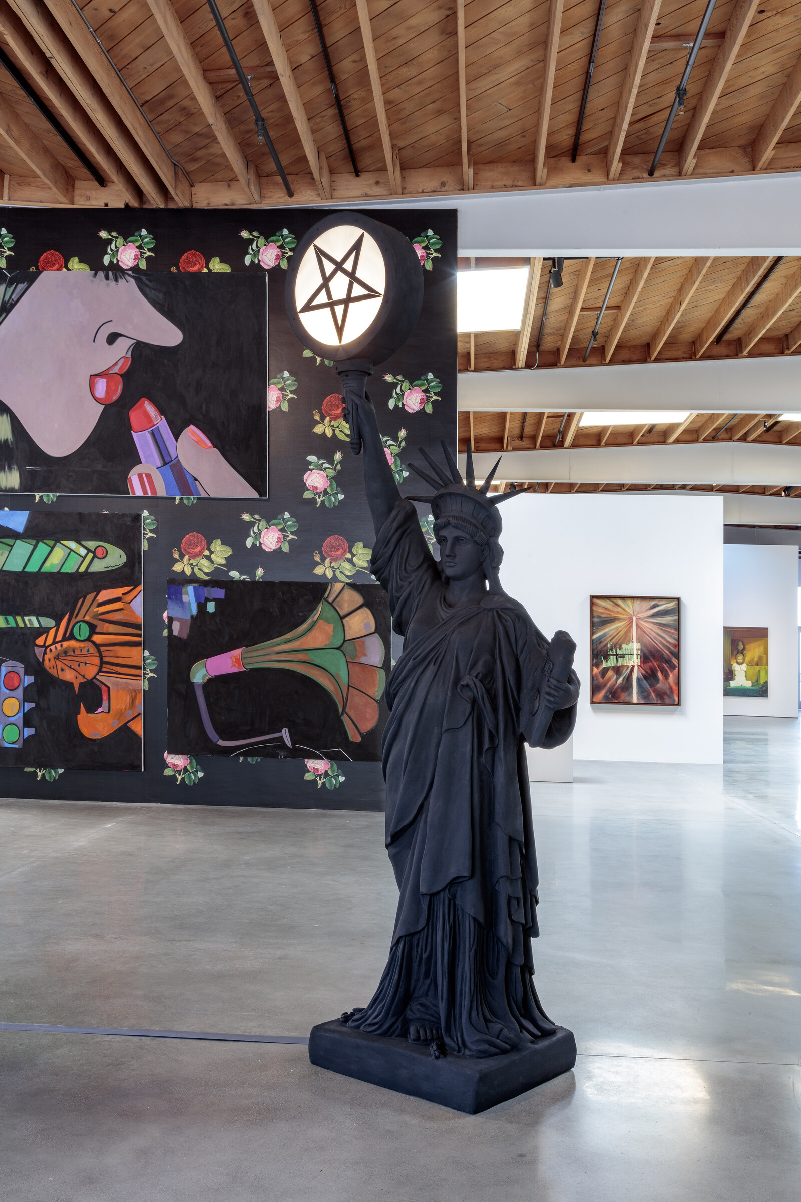 “Hollywood Babylon: A Re-Inauguration of the Pleasure Dome,” also a Deitch affair, co-presented with Nicodim Gallery and AUTRE Magazine, ditches the iconography of occultism for a “mystical” revisitation of Hollywood’s glamours. Haunting Wolfgang Puck’s former Sunset Strip restaurant, Spago, the exhibition builds on a proposition of pleasure carbon-dated back to a time where success was measured in Quaaludes and tabloid culture. As the press release put it, the show represents “an outsider’s longing look to the west.” But whatever sex, drugs, and deviance the show is meant to conjure are nonexistent in the exhibition. Even the glowing hellfire of Kenneth Anger’s short film The Inauguration of the Pleasure Dome (1954) loses its wicked force within the clinical space. Ditto works by Mike Kelley, Kembra Pfahler, Genesis P-Orridge, Vaginal Davis. As cultural values shift, myths begin to consolidate as established narratives: if artworks are to remain animated, their context must be revised or upended. Instead, too many of these sprawling group exhibitions appear more concerned with a slick sales pitch than actually considering the ways in which featured works run against the grain of our reality, drag us into realms of surprise and delight, or react to the traditions they were once molded against. Propositions like the “Pleasure Dome” do little more than petrify wild narratives into clickbait, devoid of pleasure.