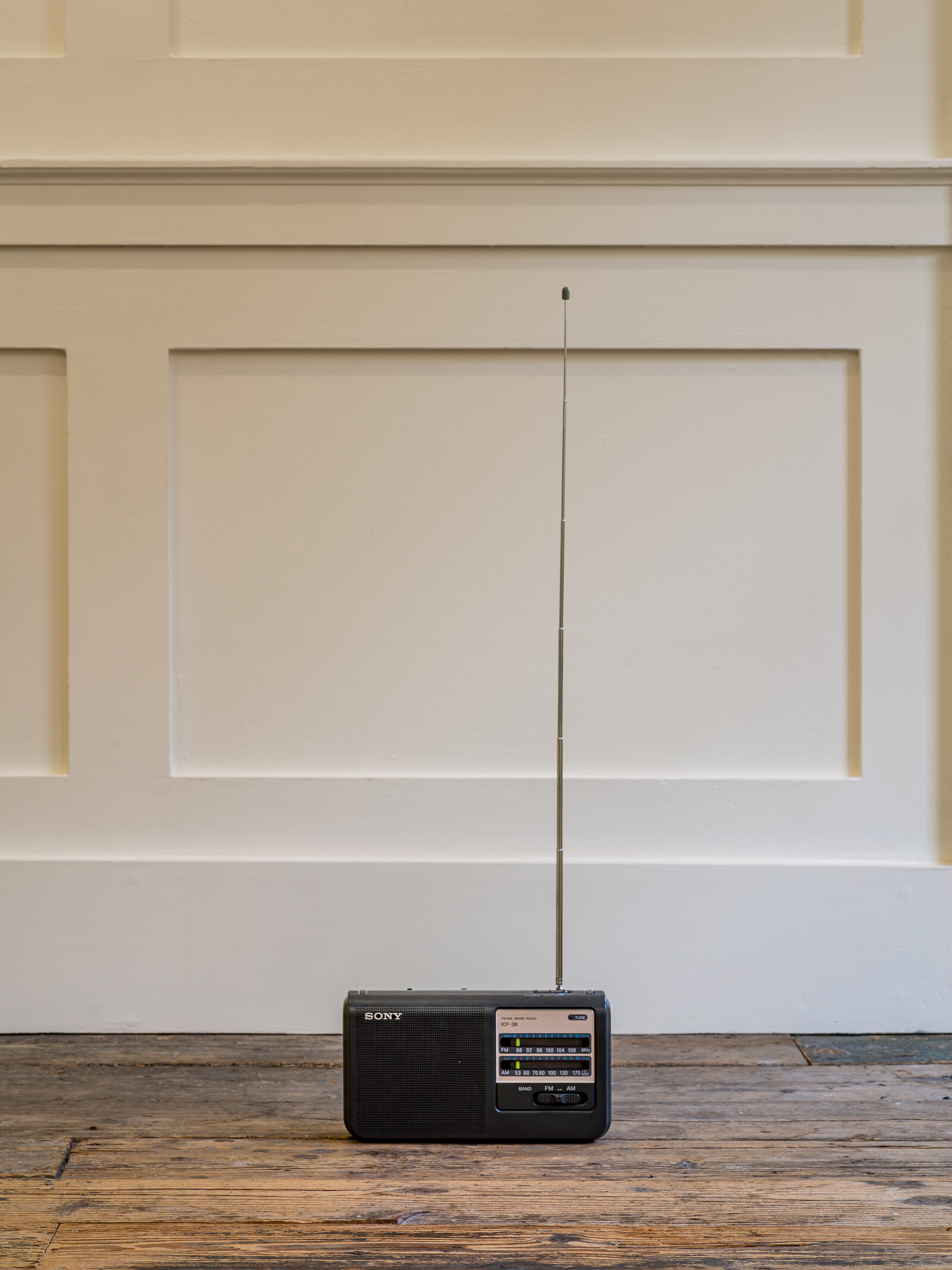 The first room of “AYE!” is carpeted with fine sand. Audio from Philip Kaufman’s 1988 film adaptation of The Unbearable Lightness of Being fills the air. “Tomas,” a woman asks between kisses, “what are you thinking?” To which Tomas replies: “I’m thinking how happy I am.” The clip loops—the lovers locked in this tender moment, accompanied by piano music and the thrum of rain and windscreen wipers—and with every repeat becomes more cloying and meaningless. Four television screens in a row to one side emit a white glow which fades each time the loop ends, an electronic sunset on the beach. There is a formal resonance between the artificially uniform texture of the sand, the blank monochrome screens, and the eternally recurring sweet nothings. In these elements—nature, entertainment, love—we seek comfort, but here find them in a state of entropy: metronomic, sterile, vacuous.