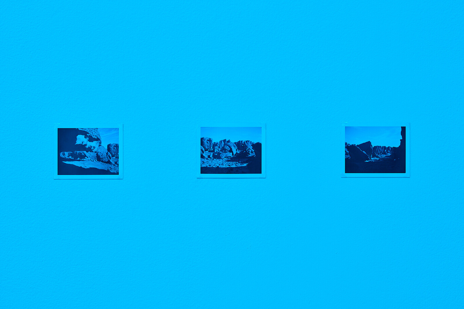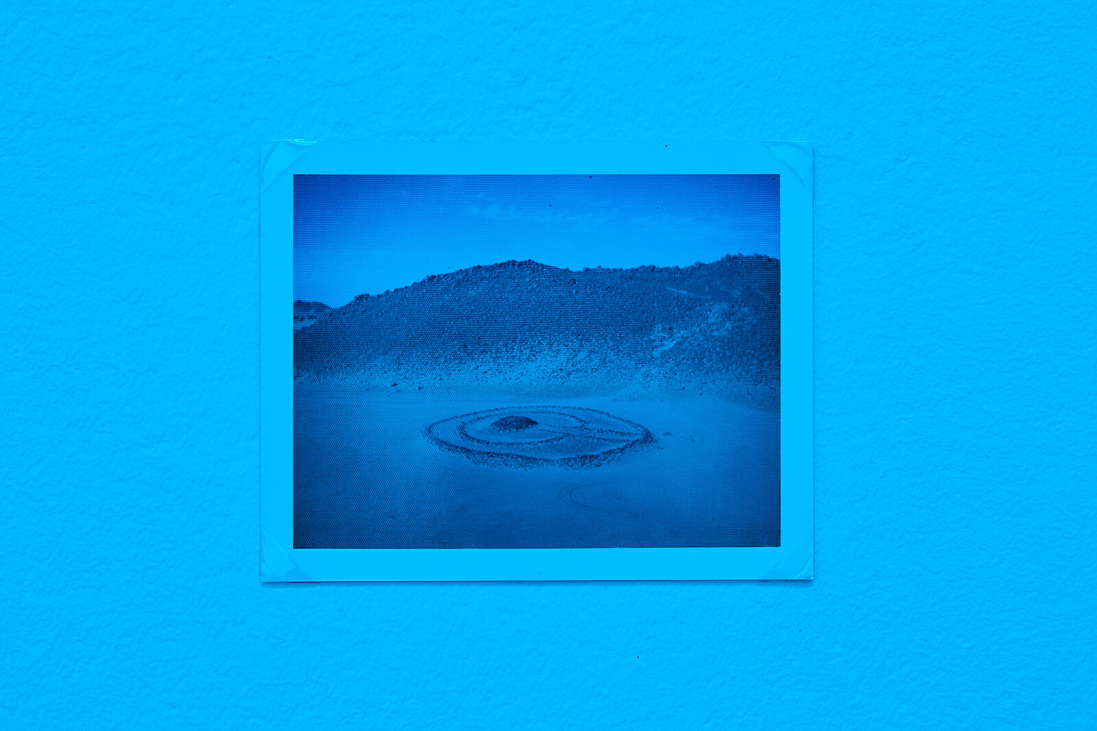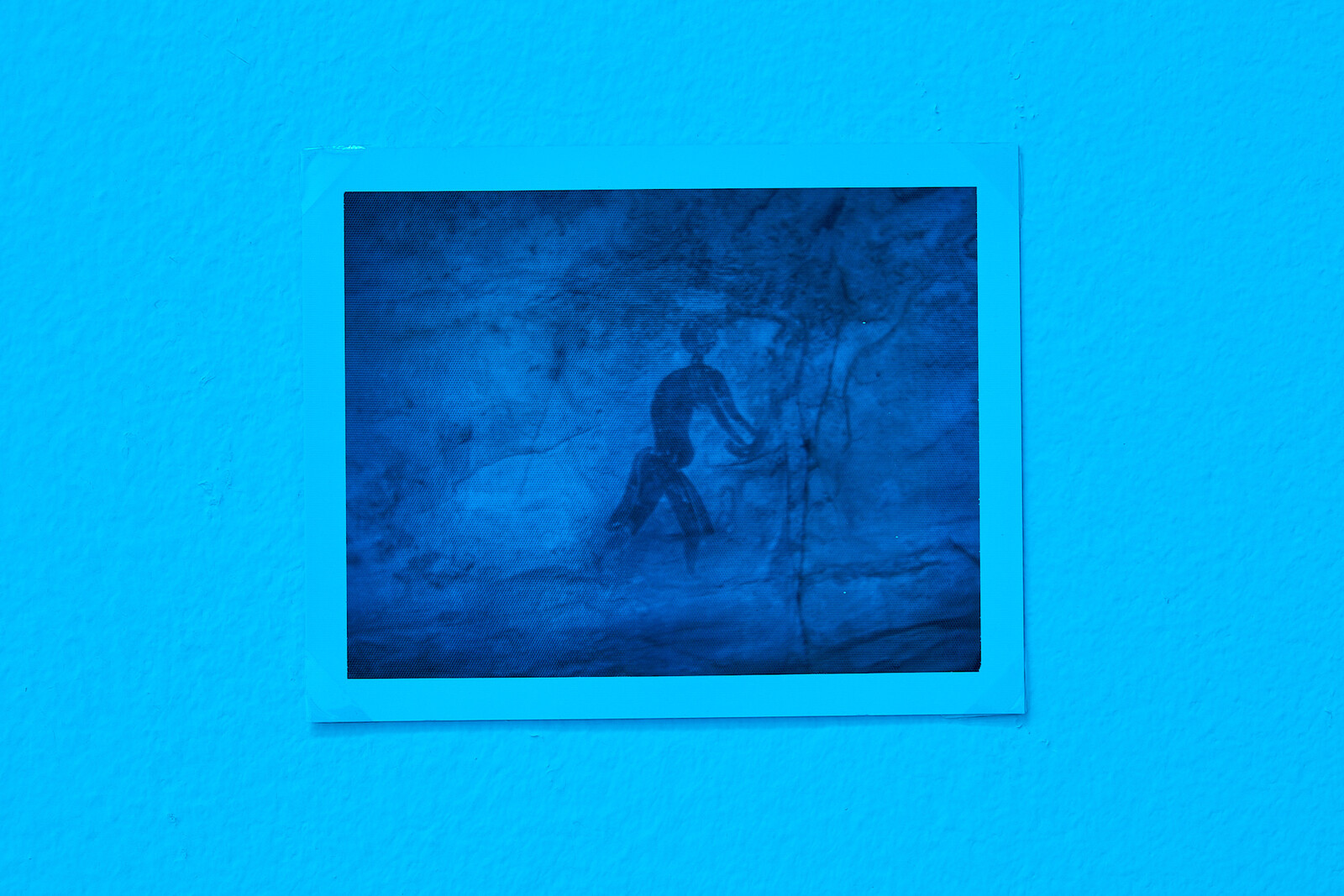 The central work, the titular Solar Cry (2020) (its name derives from Georges Bataille’s 1930 text “Rotten Sun”) is in fact invisible, a sound work that uses eight transducers and four amplifiers embedded in a wall to play, at a frequency that registers more as a feeling than a sound, a recording of 87 minutes of “silence” that Ourahmane recorded on the desert plateau of Tassili n’Ajjer. The Saharan landscape of this national park at the southeastern edge of Ourahmane’s native Algeria is so famously inhospitable that even the military has been unable to gain an operational foothold there. To make the recording, Ourahmane sheltered within a cave whose interior is inscribed with prehistoric drawings and glyphs (dating back 12,000 years to when the area was a lush savanna). To “hear” it, one must press one’s body against the wall and allow the sound to reverberate through the bones—it can scarcely enter through the ears; it must be felt.