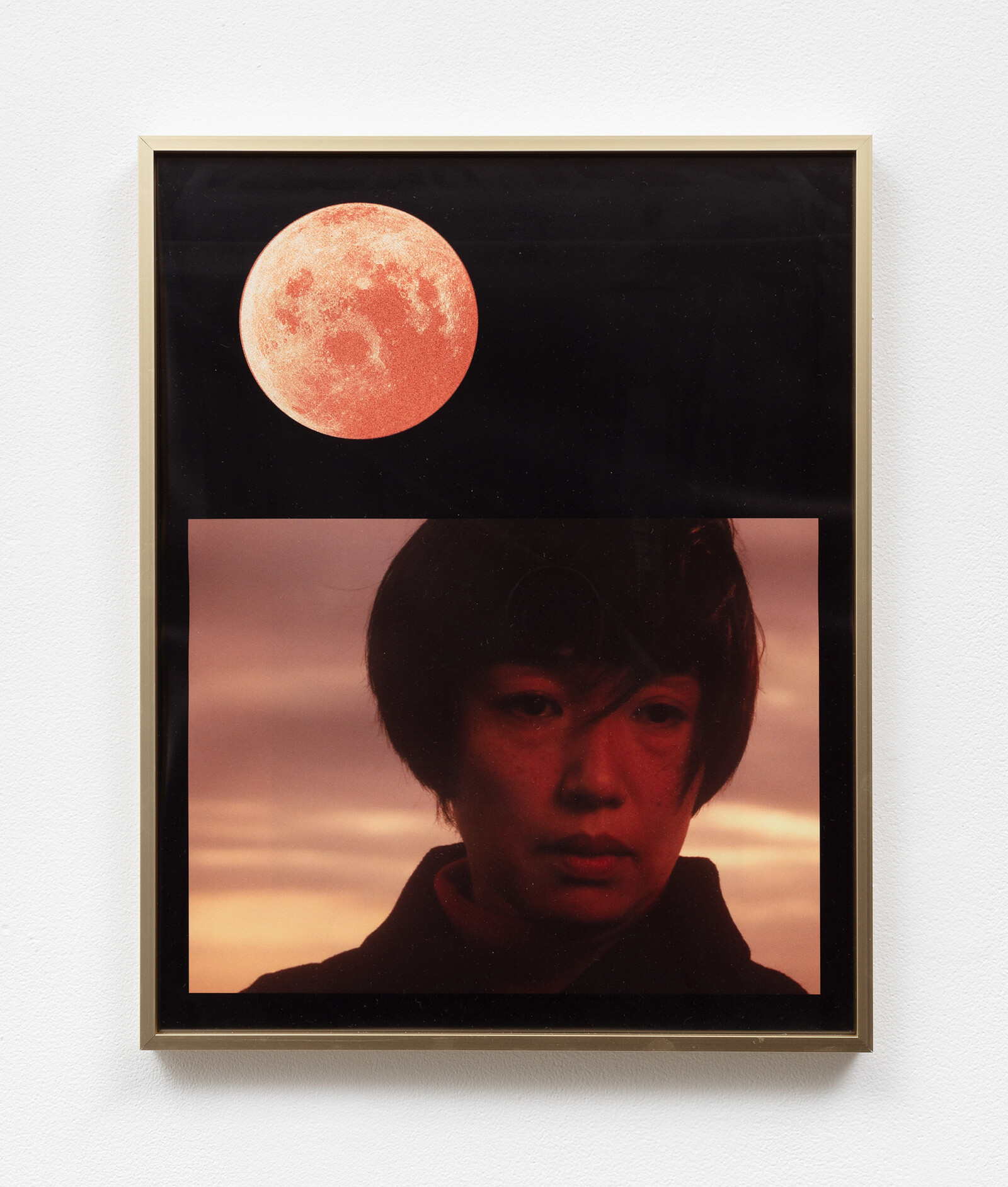 Barrois Jr.’s archival pigment print Twilight Dialogue is one of several wall works that incorporates imagery from Japanese director Juzo Itami’s 1987 film A Taxing Woman. A blood-red full moon appears in the upper half of the image; in the screenshot that appears below it, the same hue alters the facial color of the actor Nobuko Miyamoto. Keeling down to look at one of Barrois Jr.’s timepieces more closely, I notice that each ready-made has carved into it discrete mottos—one an old adage from the Latin, “I count none but golden hours.” A line by the poet Robert Browning on another—“Grow old along with me / The best is yet to be” from the 1868 dramatic monologue “Rabbi Ben Ezra,” put to song by John Lennon in 1984—is divided by the image of a grim reaper. Barrois Jr.’s understated arrangements temper the flickering, dimensional surface effects produced by Irving’s wall works, such that for a few moments, the chaos clears and the sticky swirl called dreaming clicks brightly back into focus.